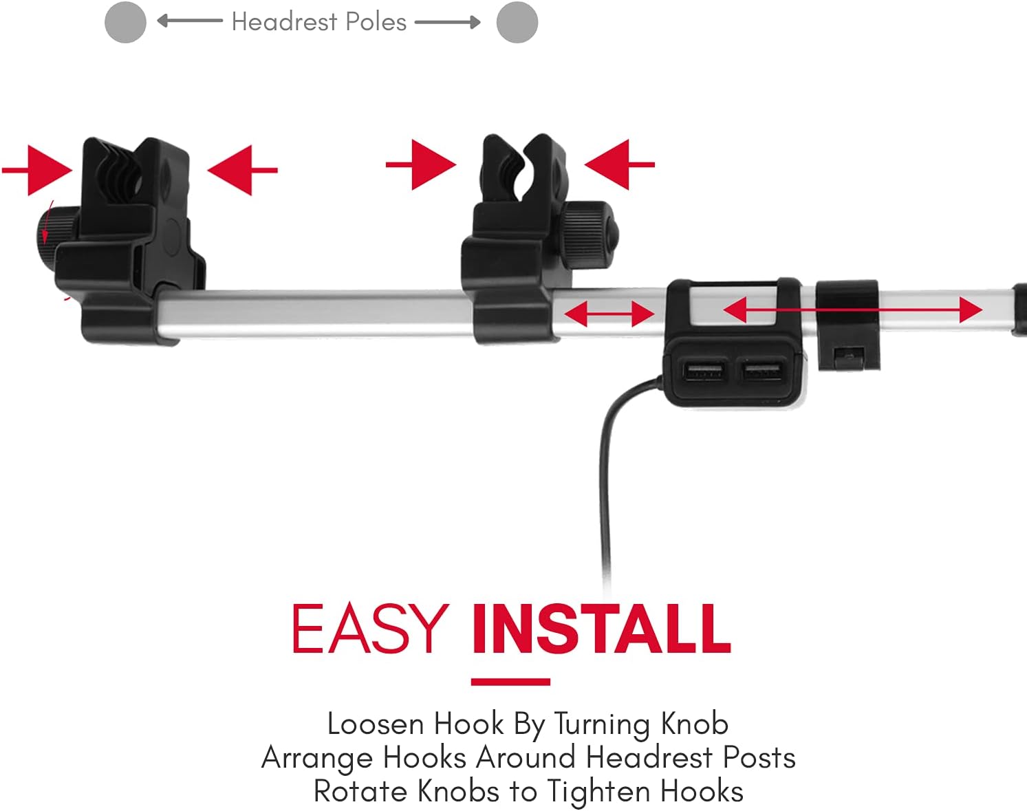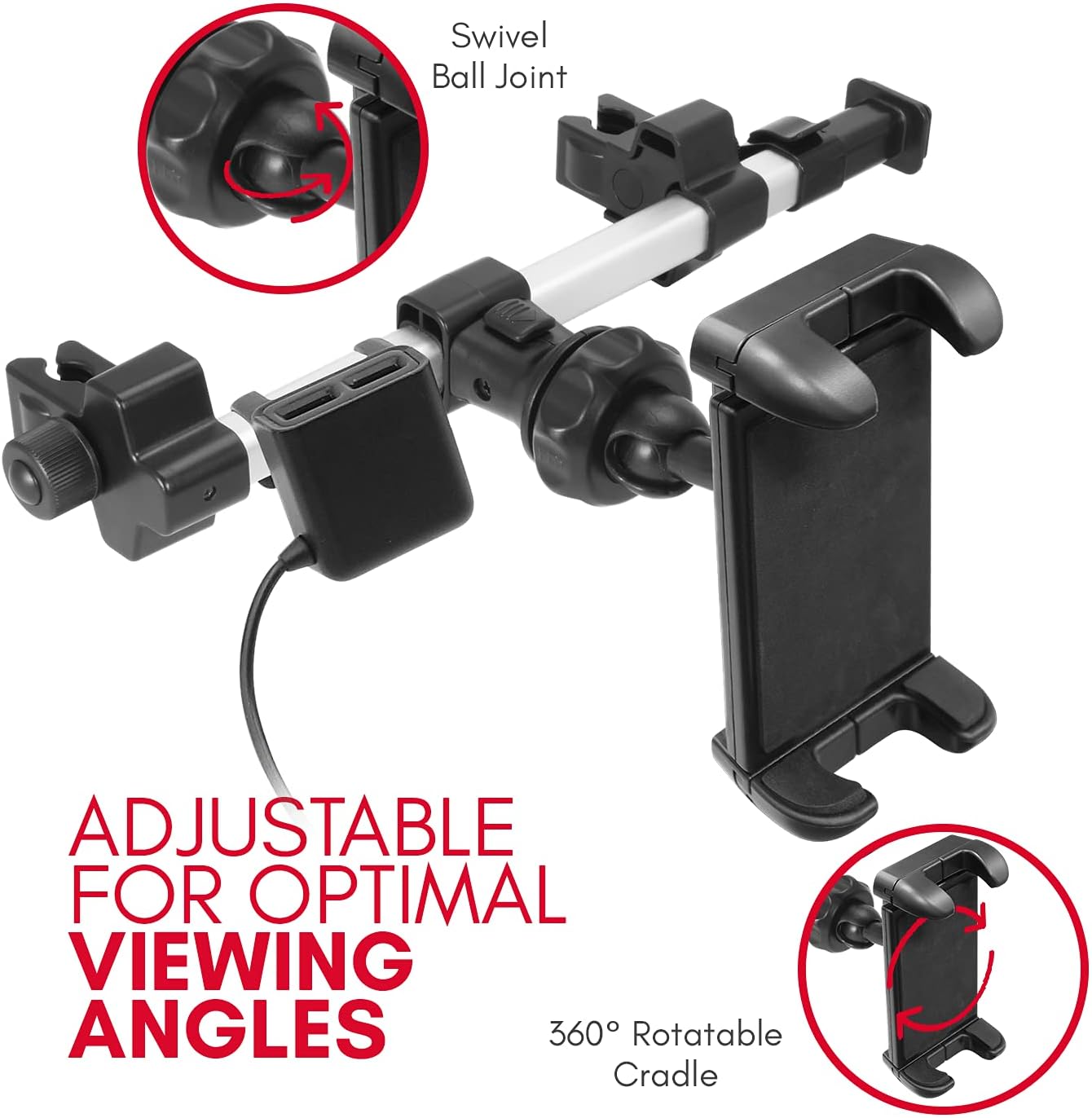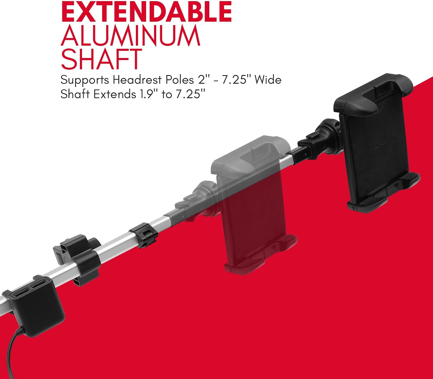 - Sicher und stabil mit einfacher Installation: Die iPad-Kopfstützenhalterung lässt sich leicht an jeder Standard-Kopfstützenstange von 5,1 cm bis 22,9 cm anklemmen, während der Aluminiumschaft Ihr Tablet sicher bei holprigen Fahrten hält. Passend