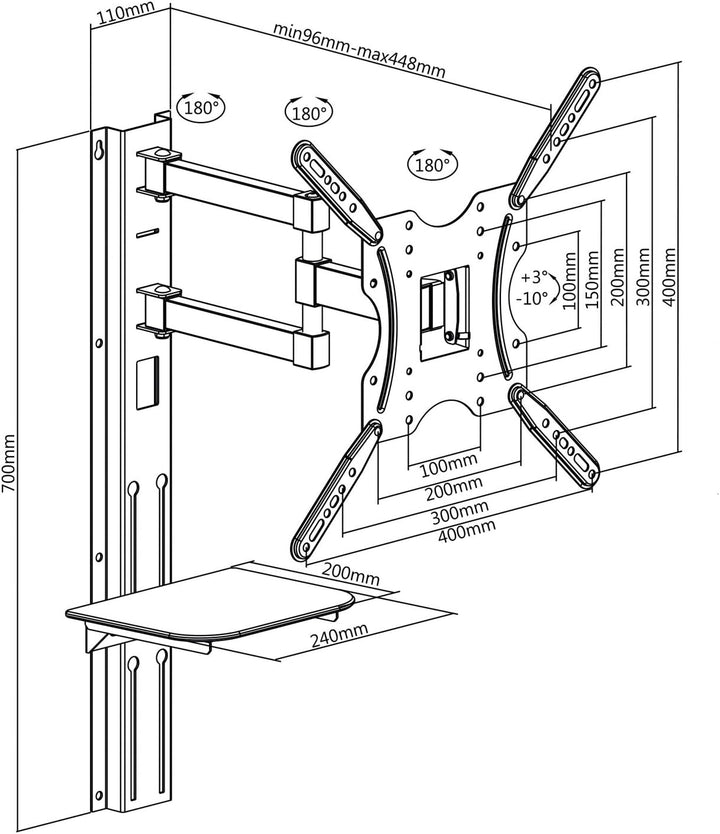 - ▶ Min./Max. VESA: 100x100, 300x200, 300x300, 400x400, 200x100, 400x200, 200x200, 400x300 ▶ Konzipiert für Fernseher mit einem Gewicht bis 30kg