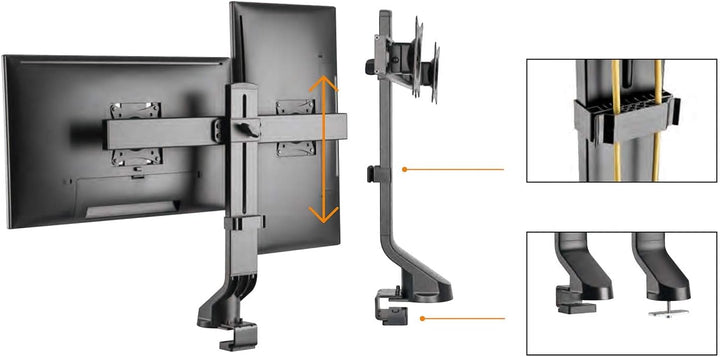 - ▶ Hochwertige 2-fach Monitor Tischhalterung geeignet für zwei LED LCD QLED OLED Monitore mit Bildschirmdiagonale von 17 bis 27"