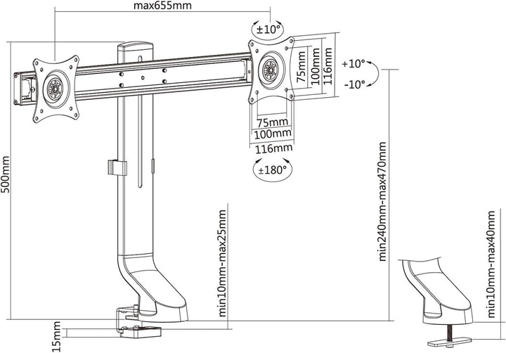 - ▶ Konzipiert für Monitor mit einem Gewicht bis 8kg (pro Halterung) ▶ Kompatibel mit VESA Standard: 75x75, 100x100