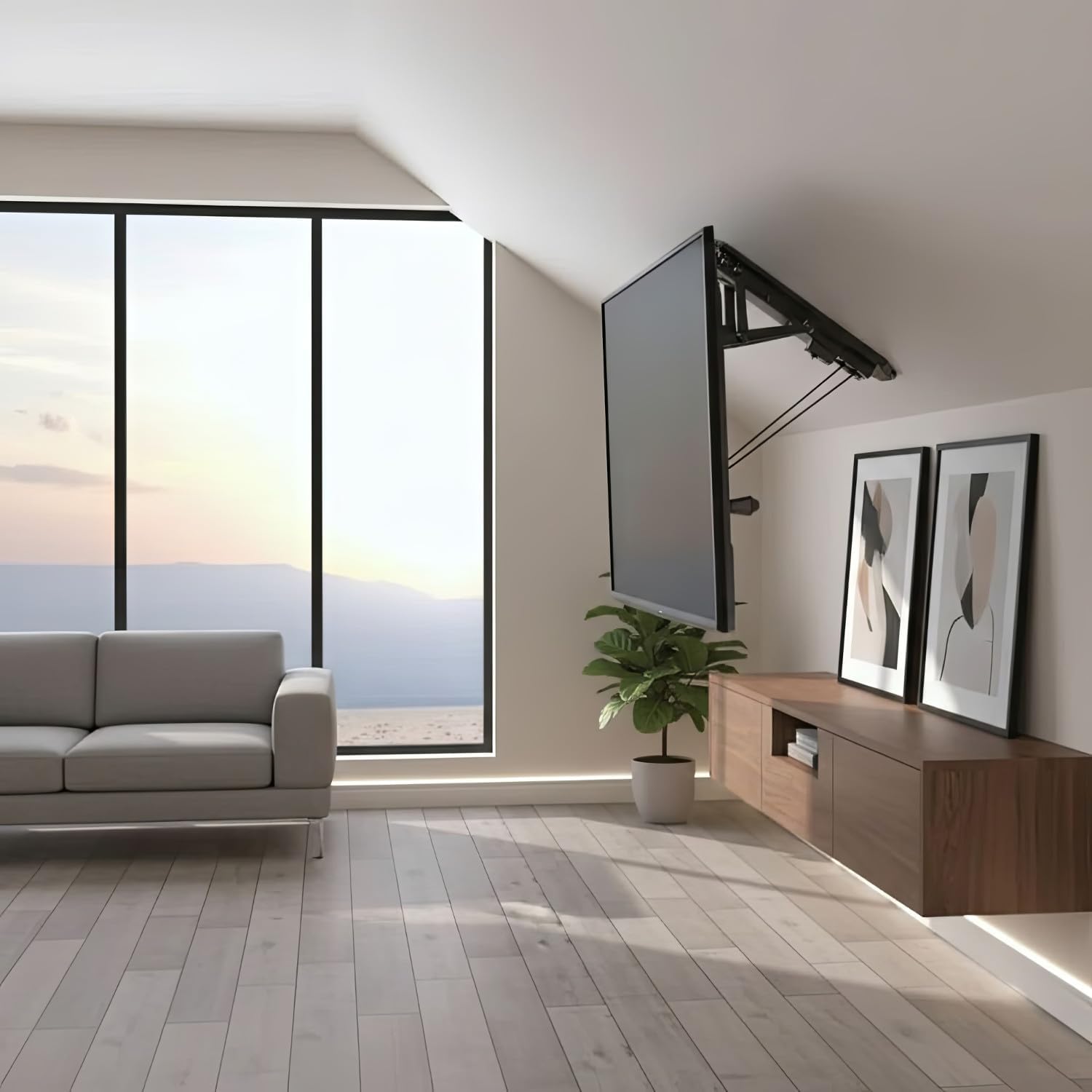- ▶ Elektrisch motorgesteuerte Deckenhalterung für OLED, QLED, LED, LCD, PLASMA, CURVED TV ▶ Empfohlene Bildschirmdiagonale von 32" bis 70" Zoll
