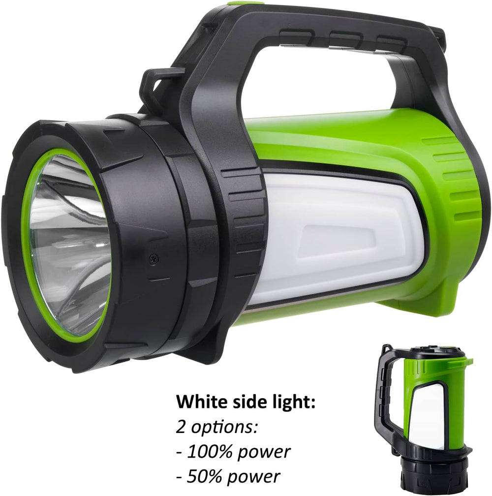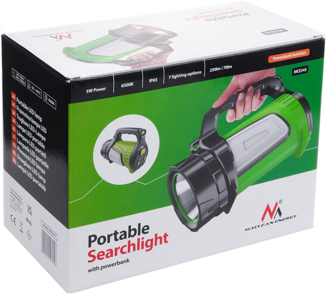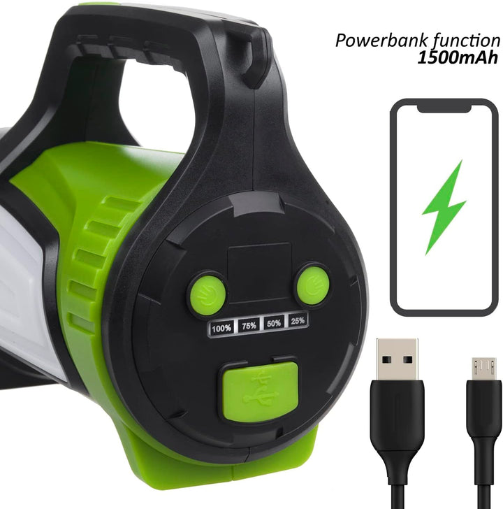 - ▶ 3 in 1 Multifunktions-Taschenlampe mit drei Lichtmodi, 2 Seitenlichtern und Powerbank Funktion