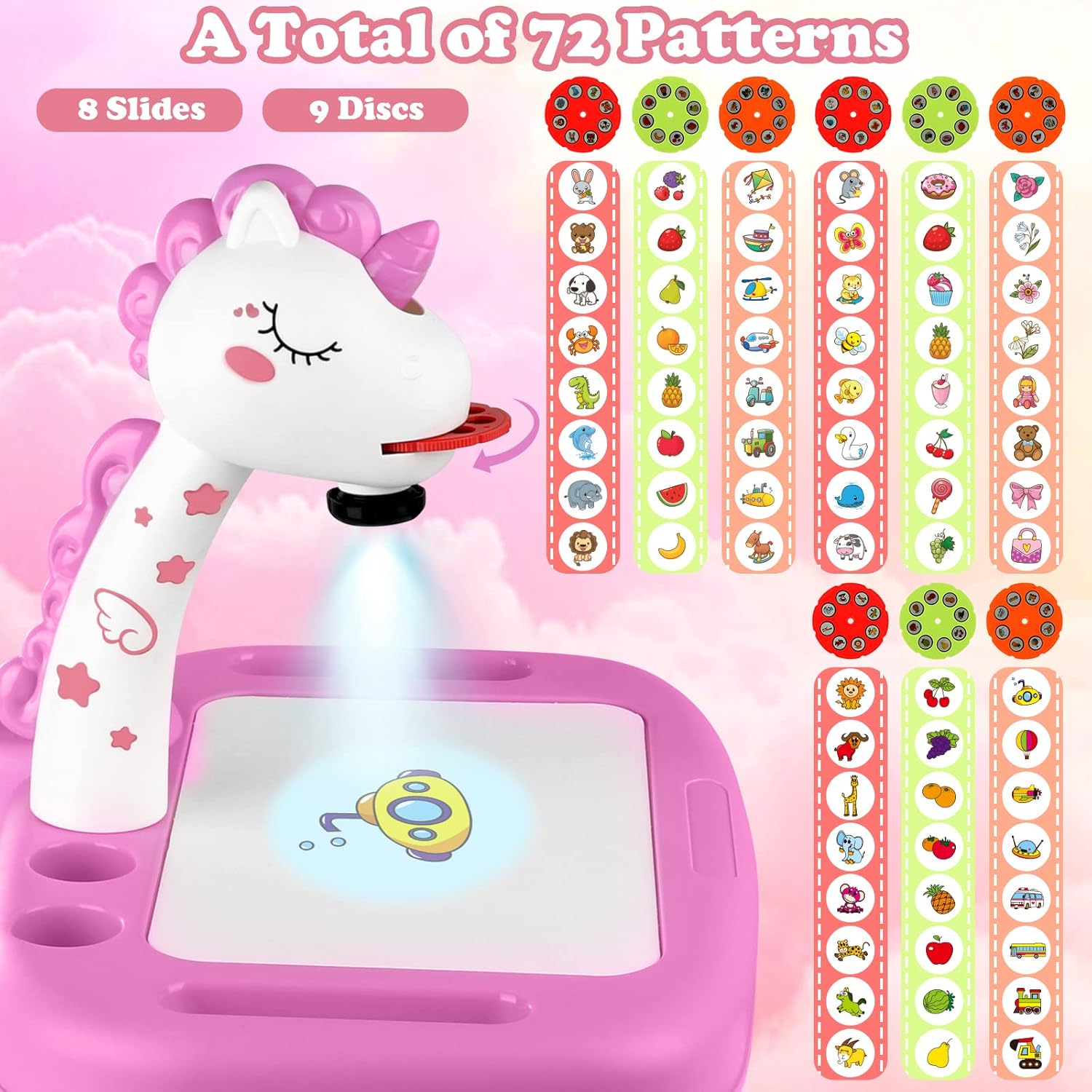 - Zeit für Eltern und Kind: Der Einhorn-Malprojektor bietet eine grossartige Gelegenheit für Eltern und Kinder, sich zu verbinden. Legen Sie die Scheibe in den Malprojektor ein, drehen Sie die Scheibe langsam, bis das Muster klar ist, und die Kinder