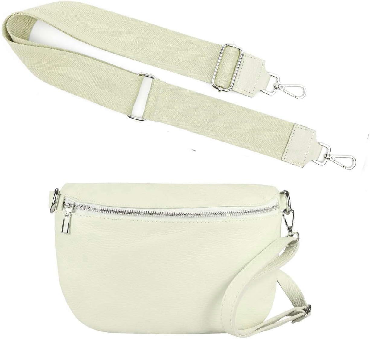 Made in Italy OBC Damen Set Gürteltasche + Schultergurt Leder Crossbody Hüfttasche Bauchtasche Umhän