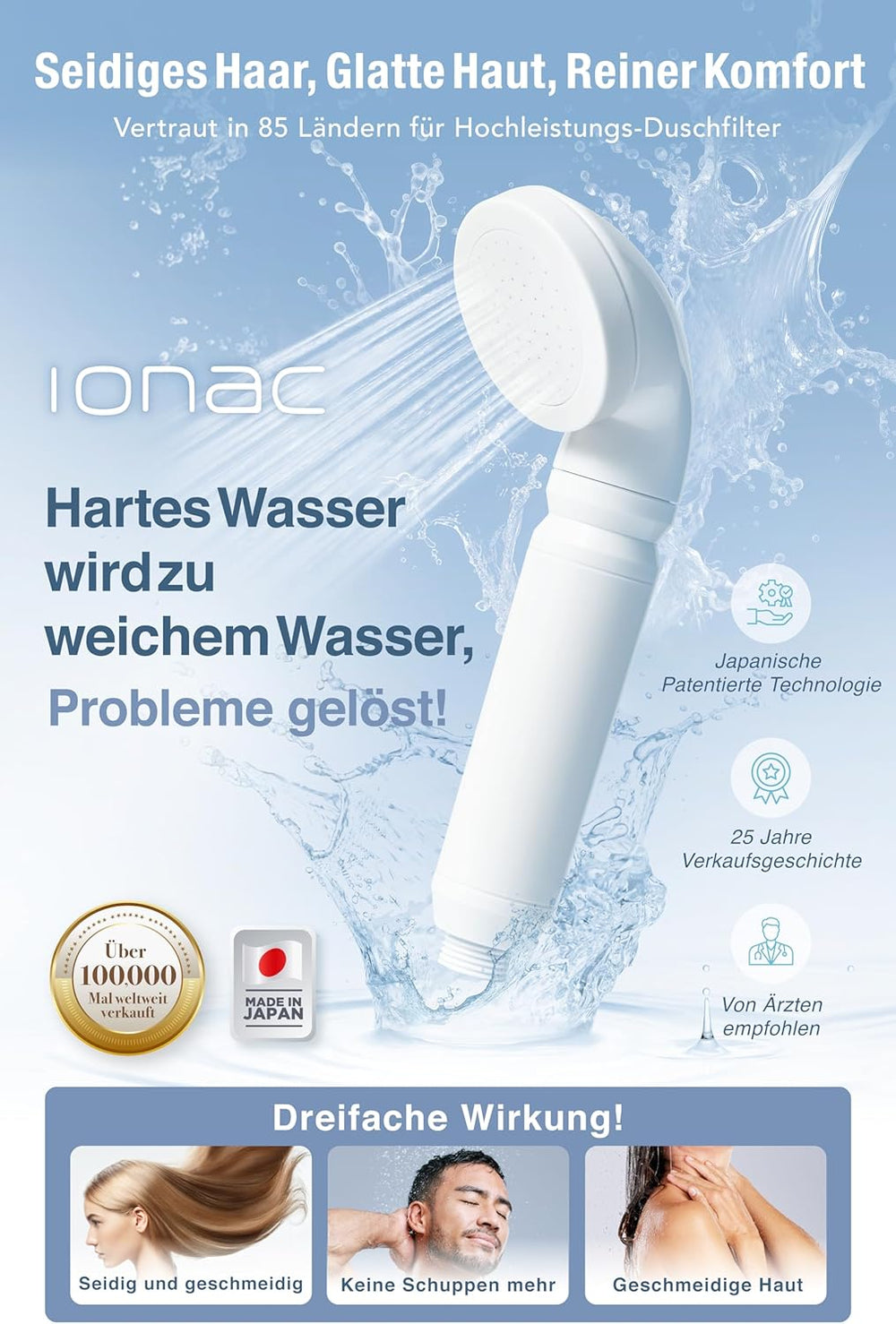 - 【Porenerfrischend mit Weichspüleffekt】 Hartes Wasser hinterlässt oft Rückstände aus Shampoo und Kalzium, die die Poren verstopfen und die Haut reizen. Der Ionac, ein wasserenthärter Dusche, verändert die Struktur des Kalziums und sorgt für