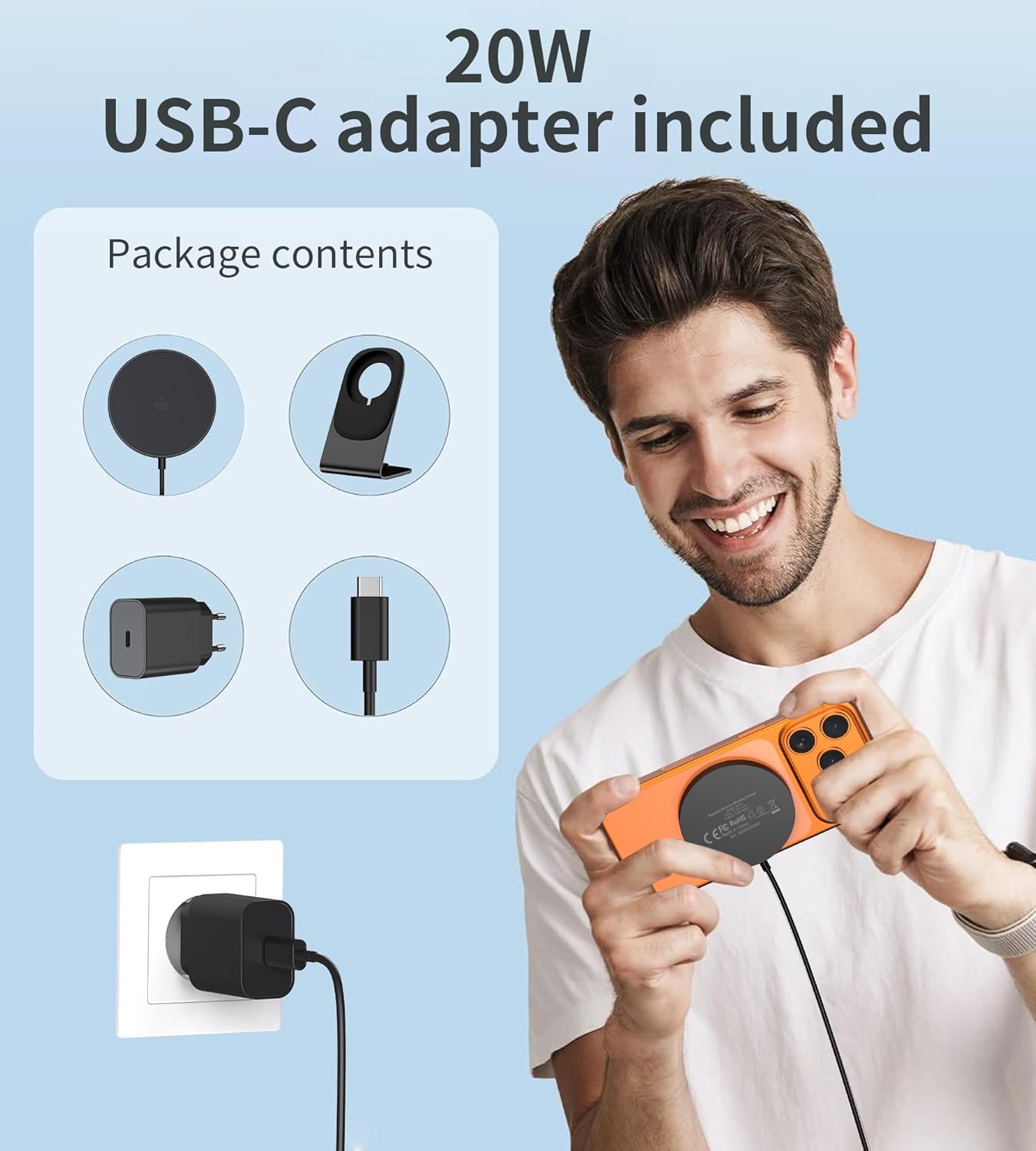- 【Reisefreundlich & intelligente Sicherheit】Das kompakte Design (Ladeboard + 20W-Adapter) passt in jede Reisetasche. Verbesserte Magnete bieten 30% stärkeren Halt als Vorgänger. Das ETL-zertifizierte System schützt permanent vor