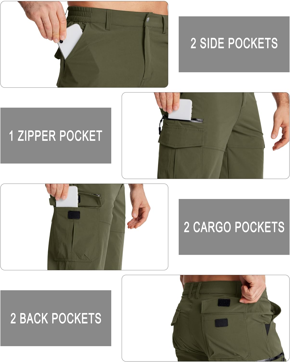 - Multi Taschen: 2 Einschubtaschen, 1 Beintasche mit Reissverschluss, 2 Pattentaschen vorne, 2 Pattentaschen hinten. Kann Ihre verschiedenen Habseligkeiten vollständig unterbringen.