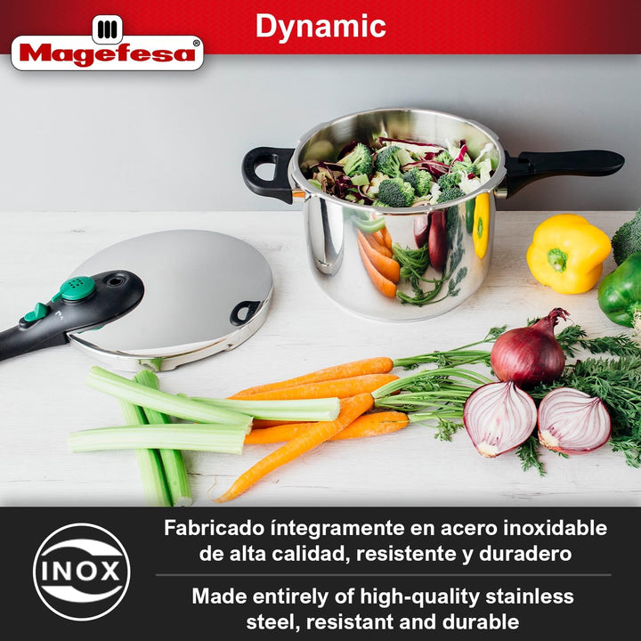 - SUPER SCHNELL: Der Schnellkochtopf MAGEFESA DYNAMIC bietet ein super schnelles Kochen mit einer sehr einfachen Bedienung und einem patentierten Öffnungssystem, das das Schliessen des Deckels mit minimalem Aufwand und maximaler Sicherheit ermöglicht. Er