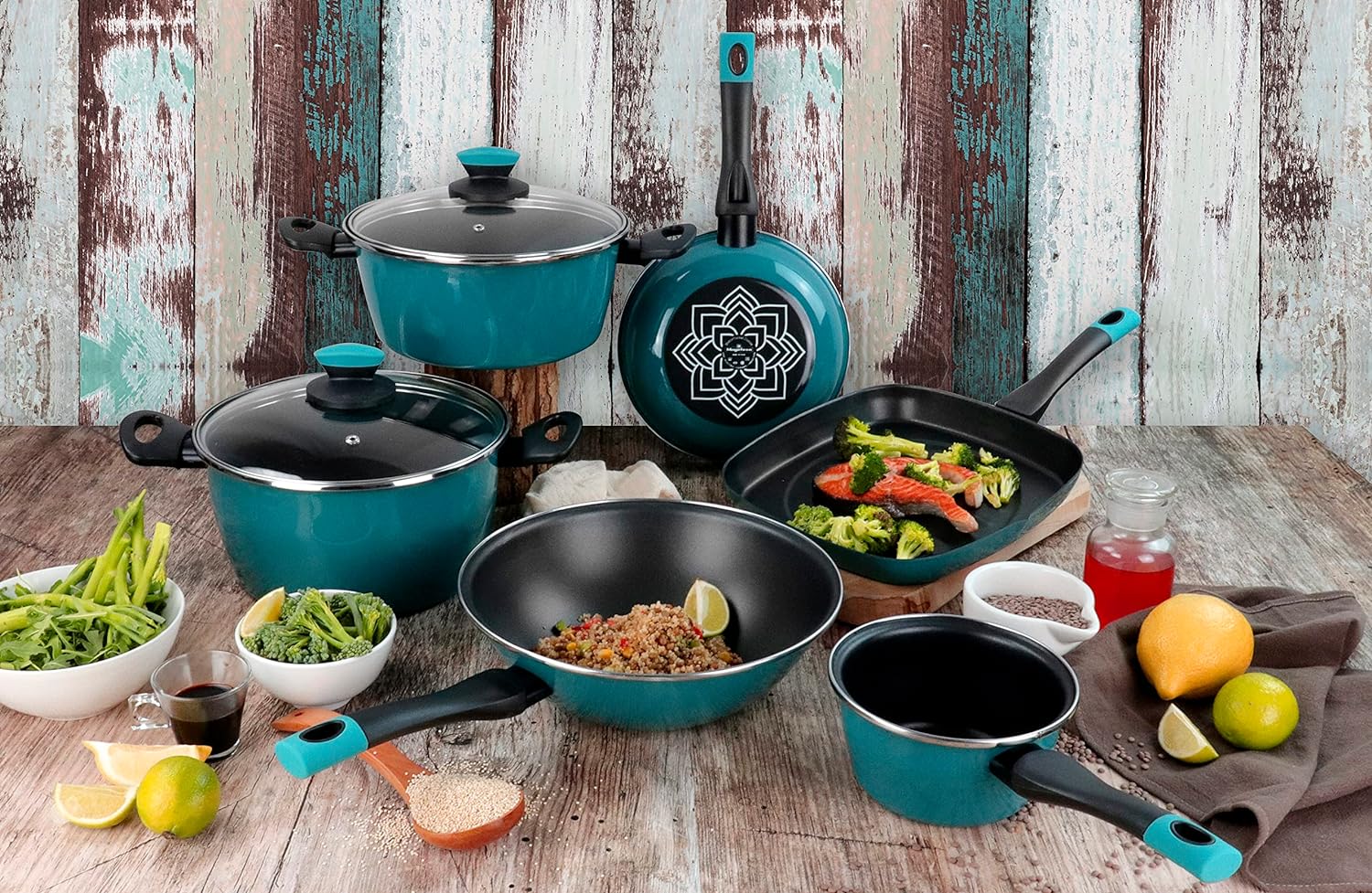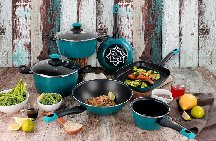 - Magefesa Lotus Kochtopf, 20 cm, aus emailliertem Stahl, aussen, blau, antihaftbeschichtet, zweilagig, verstärkt, für alle Herdarten geeignet, speziell Induktion, 50 % energiesparend.