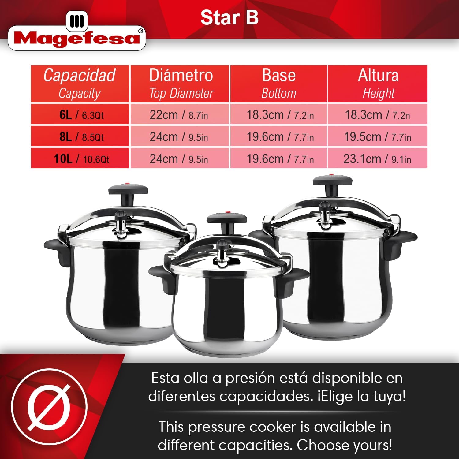 • 3 Sicherheitsmechanismen: Der MAGEFESA Star Kochtopf verfügt über 3 Sicherheitsmechanismen mit Drehventil, Druckventil und Sicherheitsverschluss. Progressives Verschlusssystem durch Drehknauf sorgt für eine sichere Handhabung.
