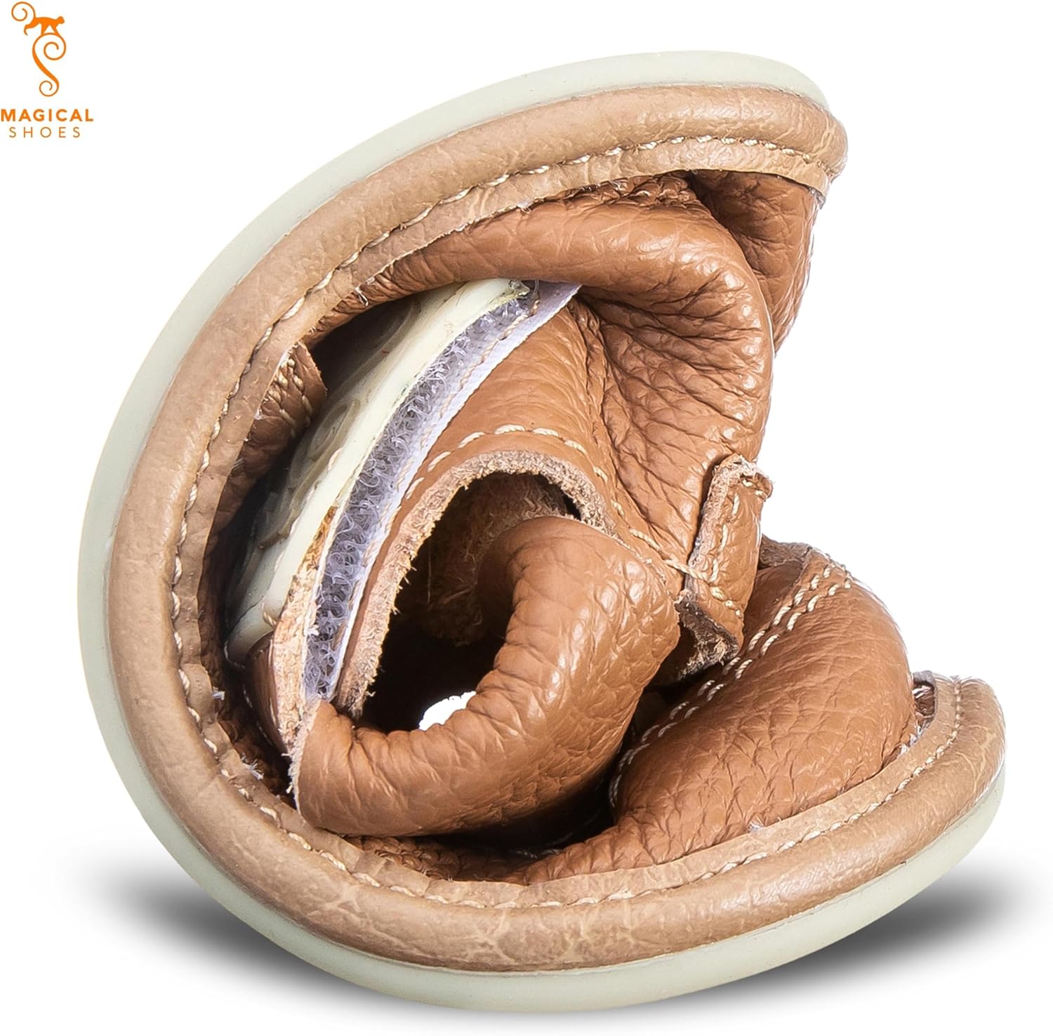 - EIGENSCHAFTEN: Die Barfussschuhe bestehen aus strapazierfähigem und anschmiegsamem Rindsleder sowohl als Obermaterial als auch als Innenauskleidung. Das weiche Innenfutter verhindert Hautabschürfungen an den empfindlichen Füsschen. Die dünne