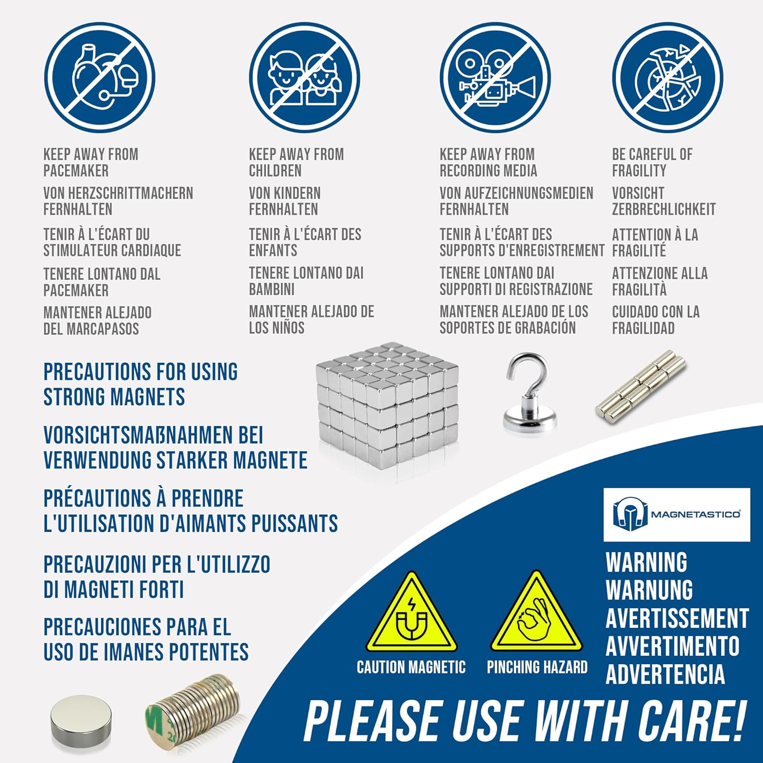 - Markenqualität von Magnetastico: Wie alle anderen magnetischen Magnetastico Produkte, so sind auch diese starken Neodym Magnete hochwertige Begleiter im Alltag, bei der Arbeit, im Büro als Büromagnete beim Basteln und in der Werkstatt als Haltemagnete