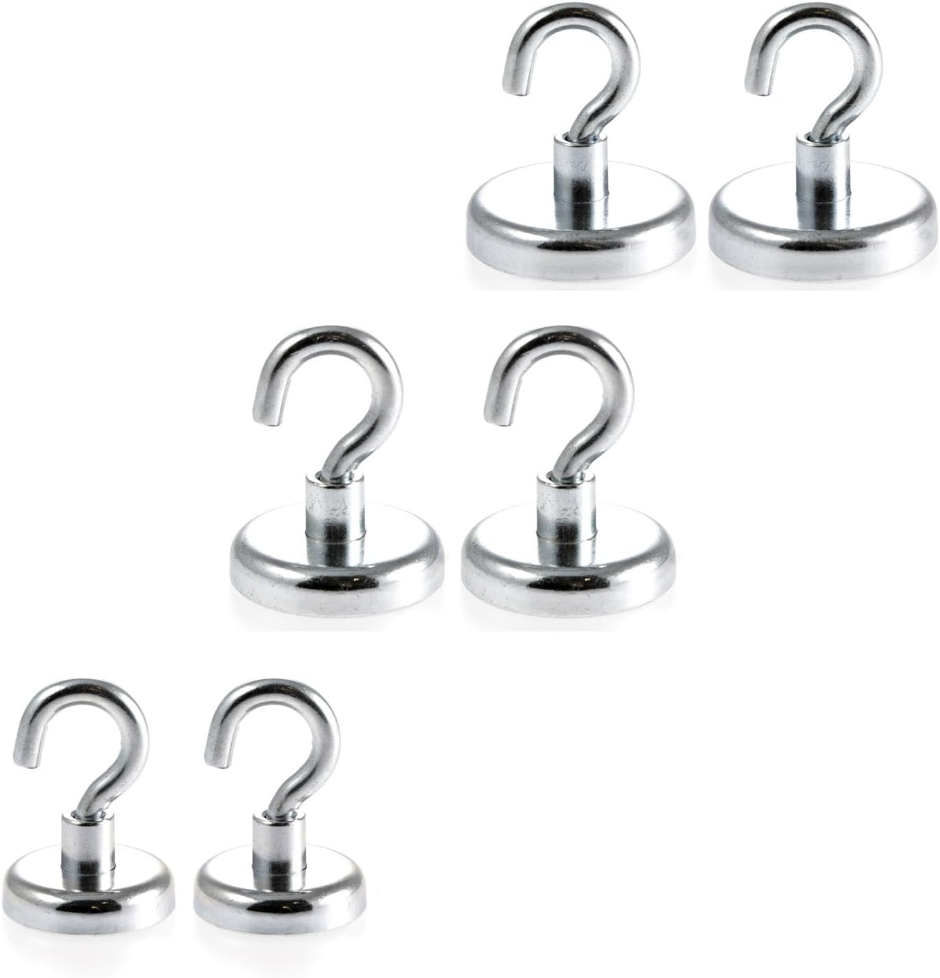 - Lieferumfang: Sie erhalten insgesamt 6 unterschiedlich grosse Topfmagnete mit eingebettetem Neodymmagneten der angegebenen Grössen 32, 36 & 42 mm Durchmesser (je Grösse 2 Stück) mit schraubbaren Haken.