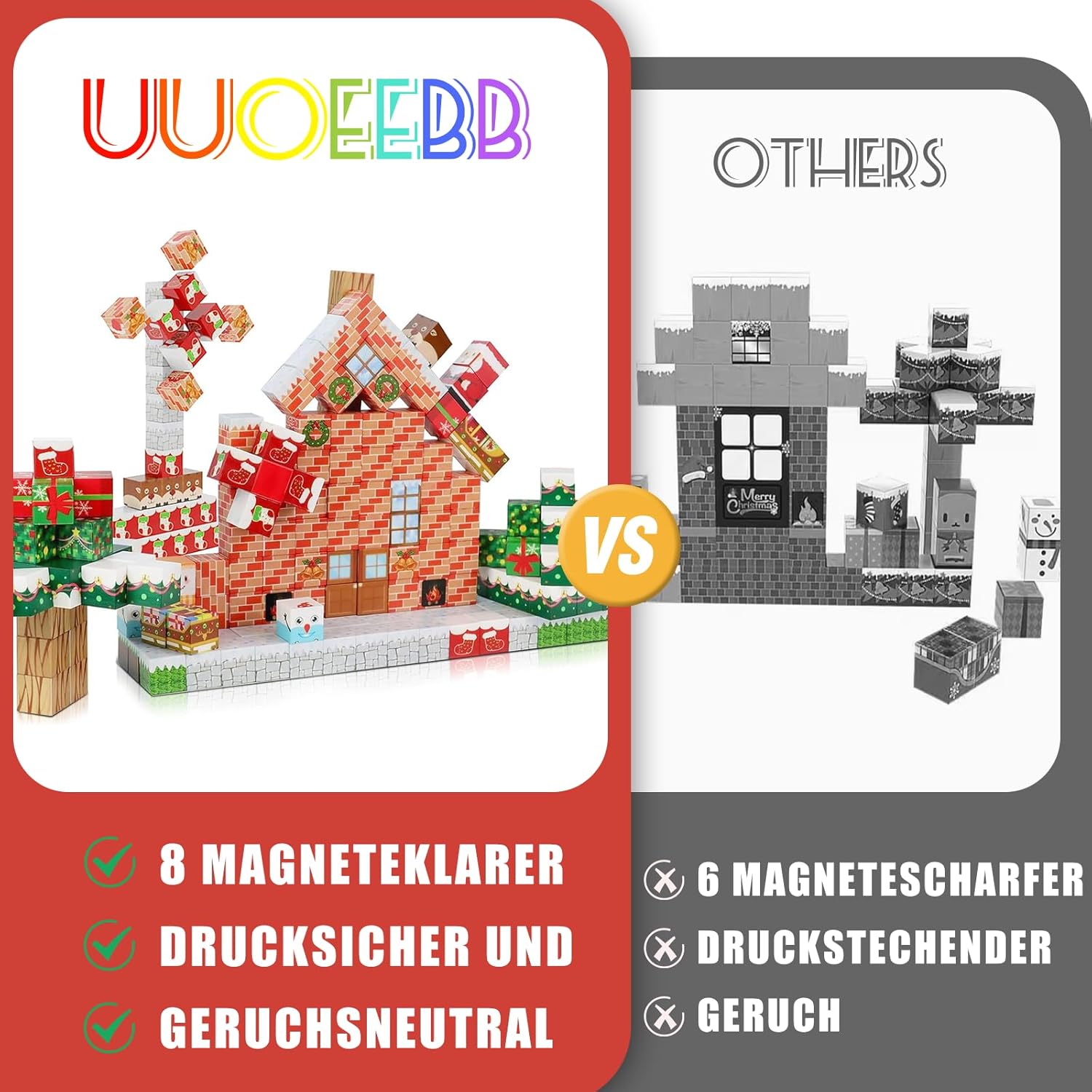 • 【Baue ein Christmas wunderland】 Lassen Sie Ihre Kinder mit diesen weihnachtlichen magnetische bausteine eine magische Urlaubswelt erschaffen. Mit lebendigen Mustern von Santa Claus, Schneemann, Rentier und Schneeflocken, diese Blöcke wecken