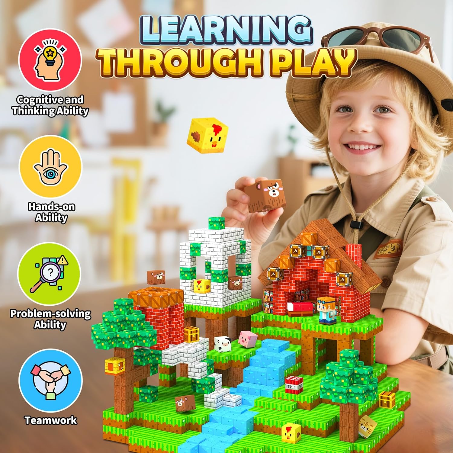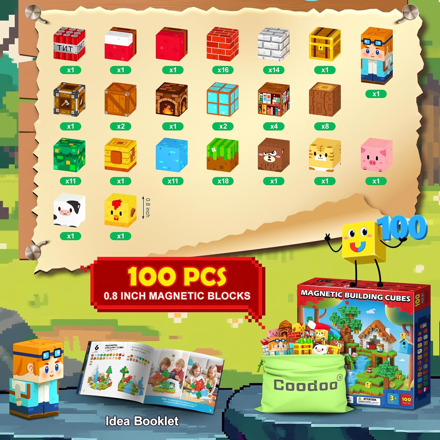 • Kreativer Bauspass: Enthält 100 magnetische Würfel (2 cm) mit 22 einzigartigen Prints in leuchtenden Farben. Mit beiliegendem Ideenheft bauen Kinder Flüsse, Tierhöhlen oder märchenhafte Burgen – abwechslungsreich, bildschirmfrei und voller Staunen