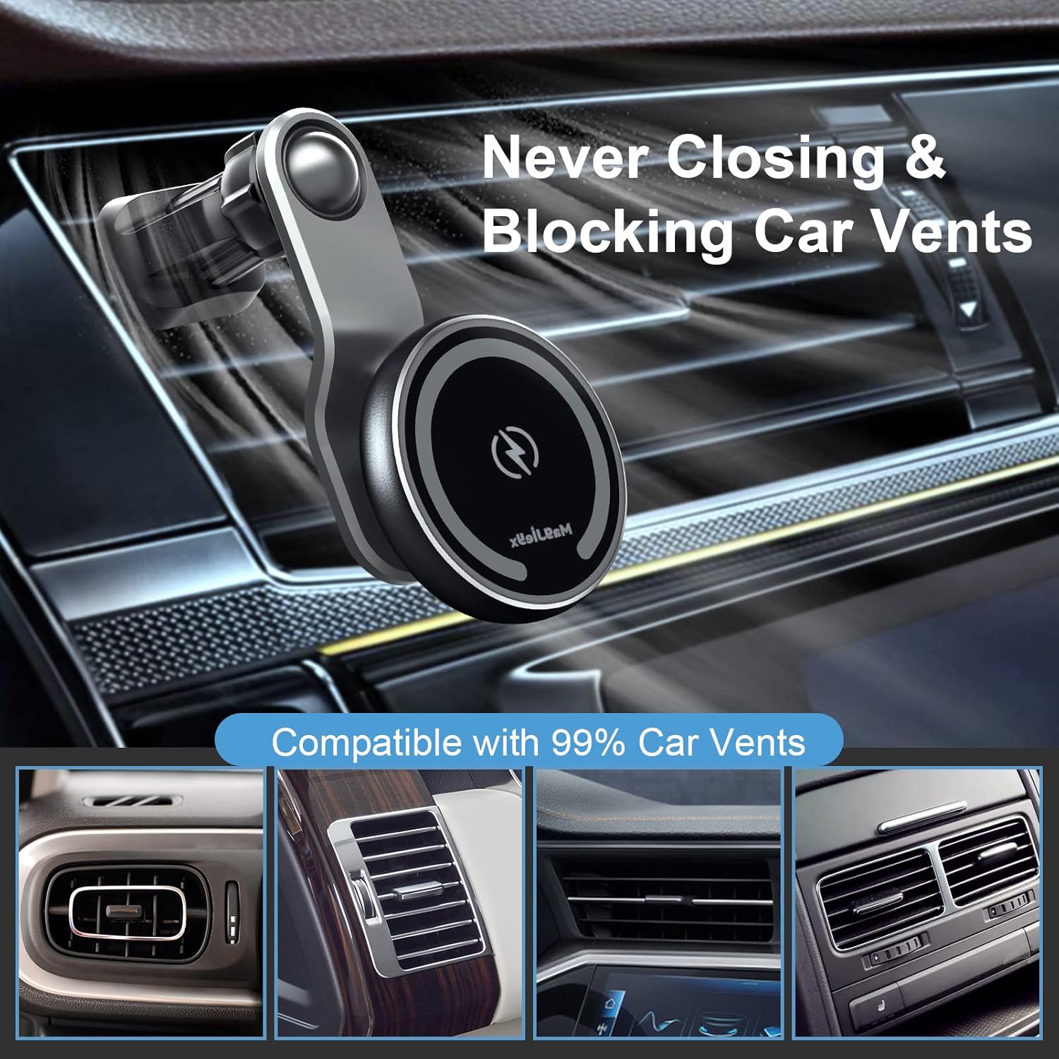 - Einfache Installation: Das Mag-Safe Kfz-Ladegerät kann auf dem Armaturenbrett oder Lüftungsgitter mit dem mitgelieferten Saugnapf und dem Lüftungsclip installiert werden, geeignet für alle Automodelle. Klicken Sie einfach das magnetische