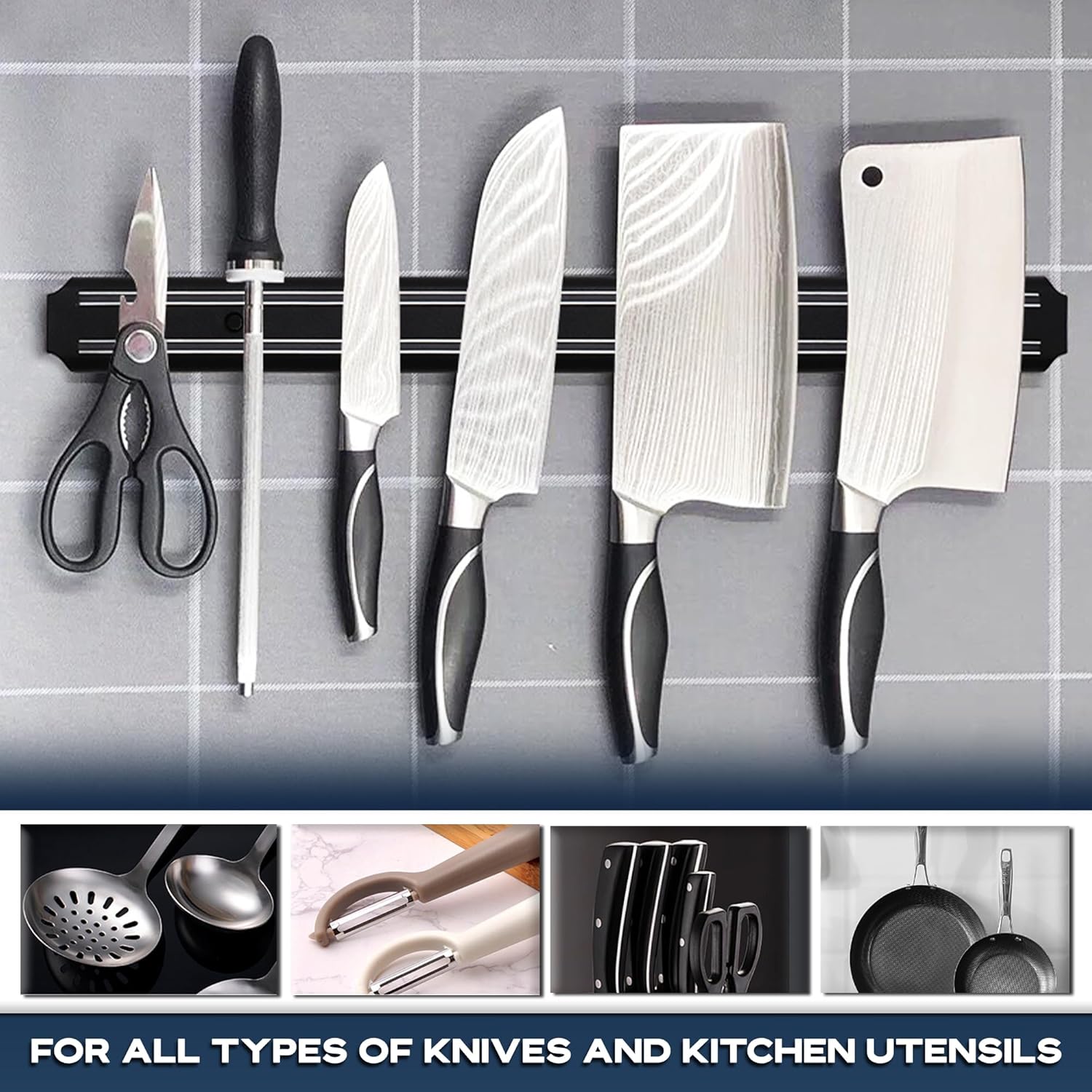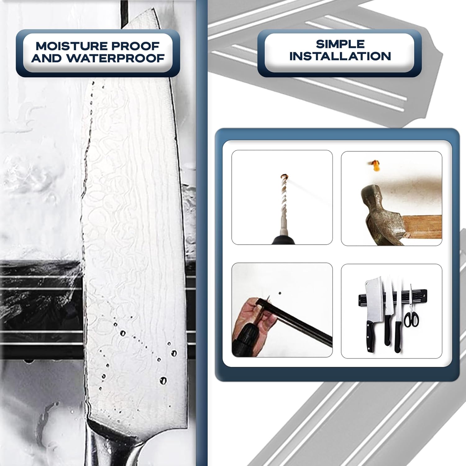 - ➖🔪➖ PLATZSPAREND UND FLEXIBEL ➖🔪➖ Wenn Ihre Küche begrenzten Platz auf der Arbeitsplatte oder in den Schubladen hat, kann eine an der Wand montierte oder unter der Arbeitsplatte befestigte Messerleiste Magnetisch eine hervorragende Lösung