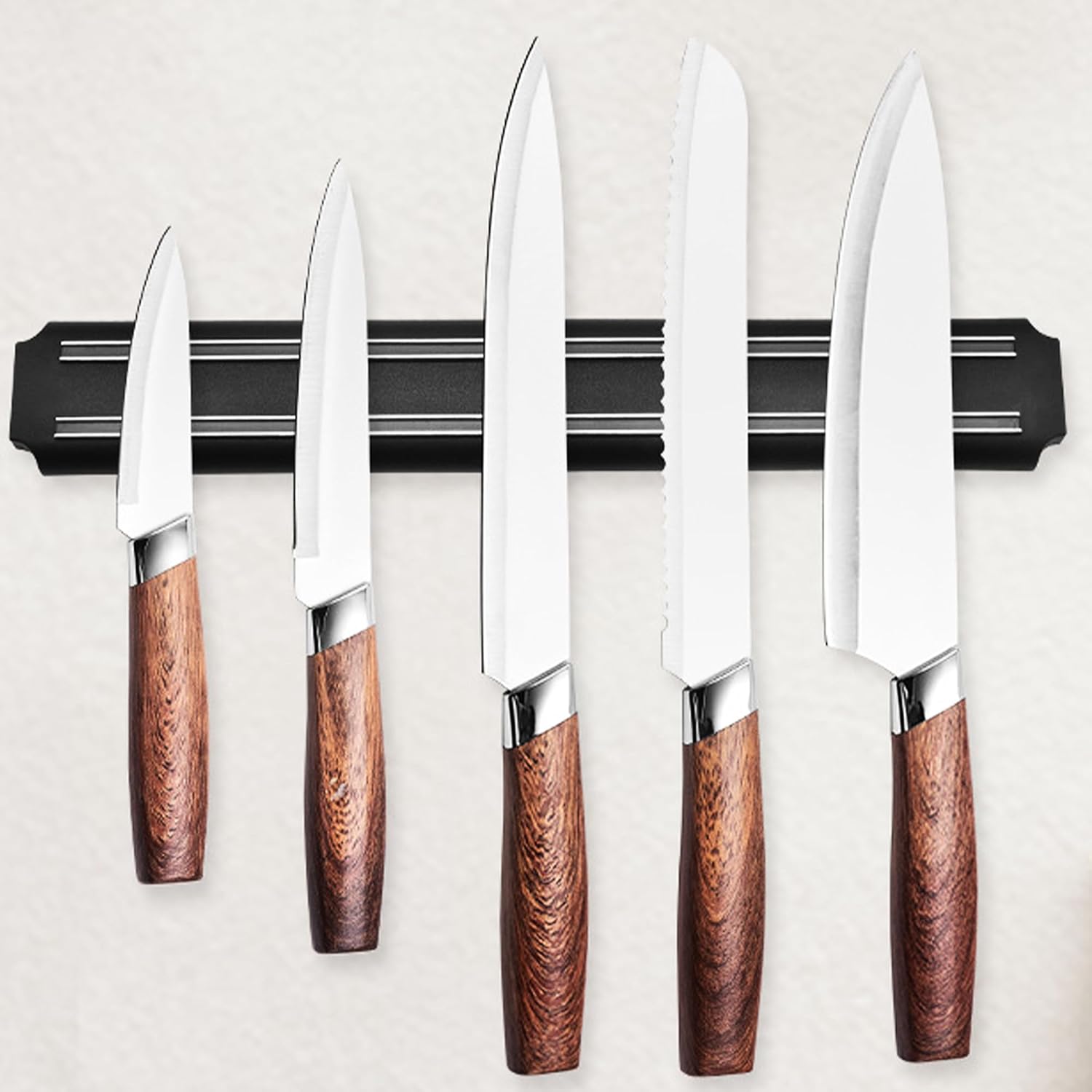 - ➖🔪➖ LANGLEBIGKEIT UND WENIGER ABNUTZUNG DER SCHNEIDEN ➖🔪➖ Im Gegensatz zu Holzblöcken, die sich mit der Zeit abnutzen oder beschädigen können, ist unsere Messer Magnetleiste sehr langlebig. Wenn Messer in einer Schublade oder sogar in