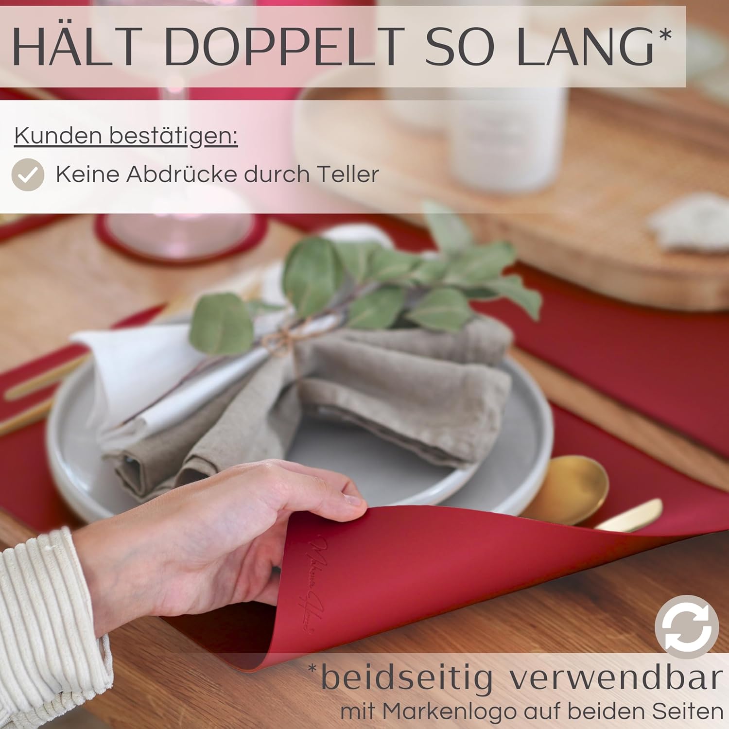 - 🔄 BEIDSEITIG VERWENDBAR: Dank der präzisen Prägung unseres Markenemblems auf beiden Seiten kann das Platzset flexibel beidseitig verwendet werden, ohne Abstriche bei der Qualität oder Optik.
