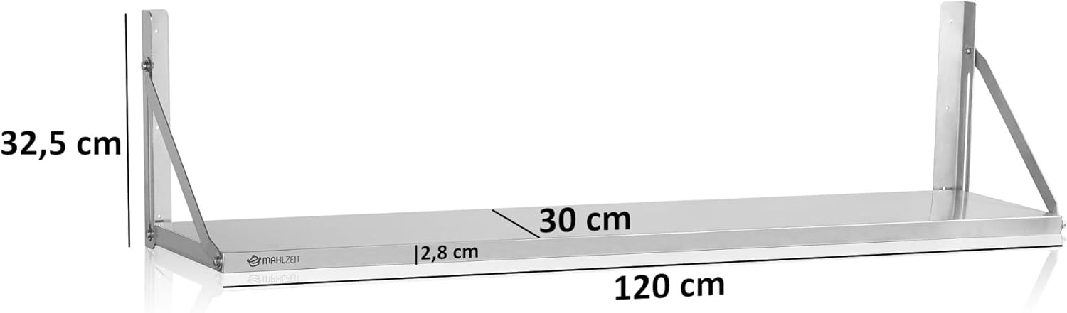 - STARK | Dieses 120 cm lange Wandregal mit einer Tiefe von 30 cm ist die optimale Lösung für eine organisierte Küche. Die grosse Ablagefläche ist je nach Art der Befestigung bis zu 30 kg belastbar und hilft Arbeitsflächen freizuhalten. Gleichzeitig