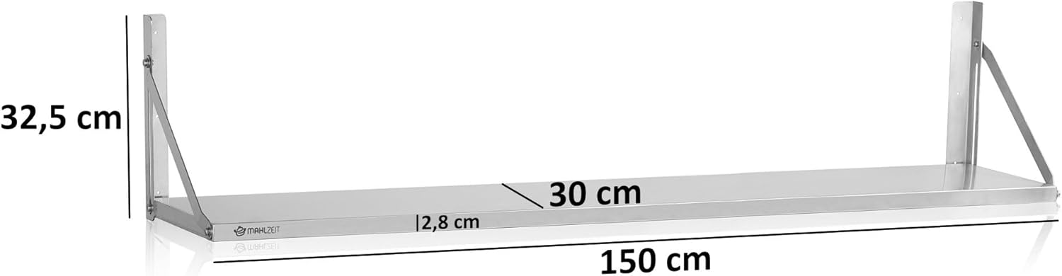 - STARK | Dieses 150 cm lange Wandregal mit einer Tiefe von 30 cm ist die optimale Lösung für eine organisierte Küche. Die grosse Ablagefläche ist je nach Art der Befestigung bis zu 30 kg belastbar und hilft Arbeitsflächen freizuhalten. Gleichzeitig