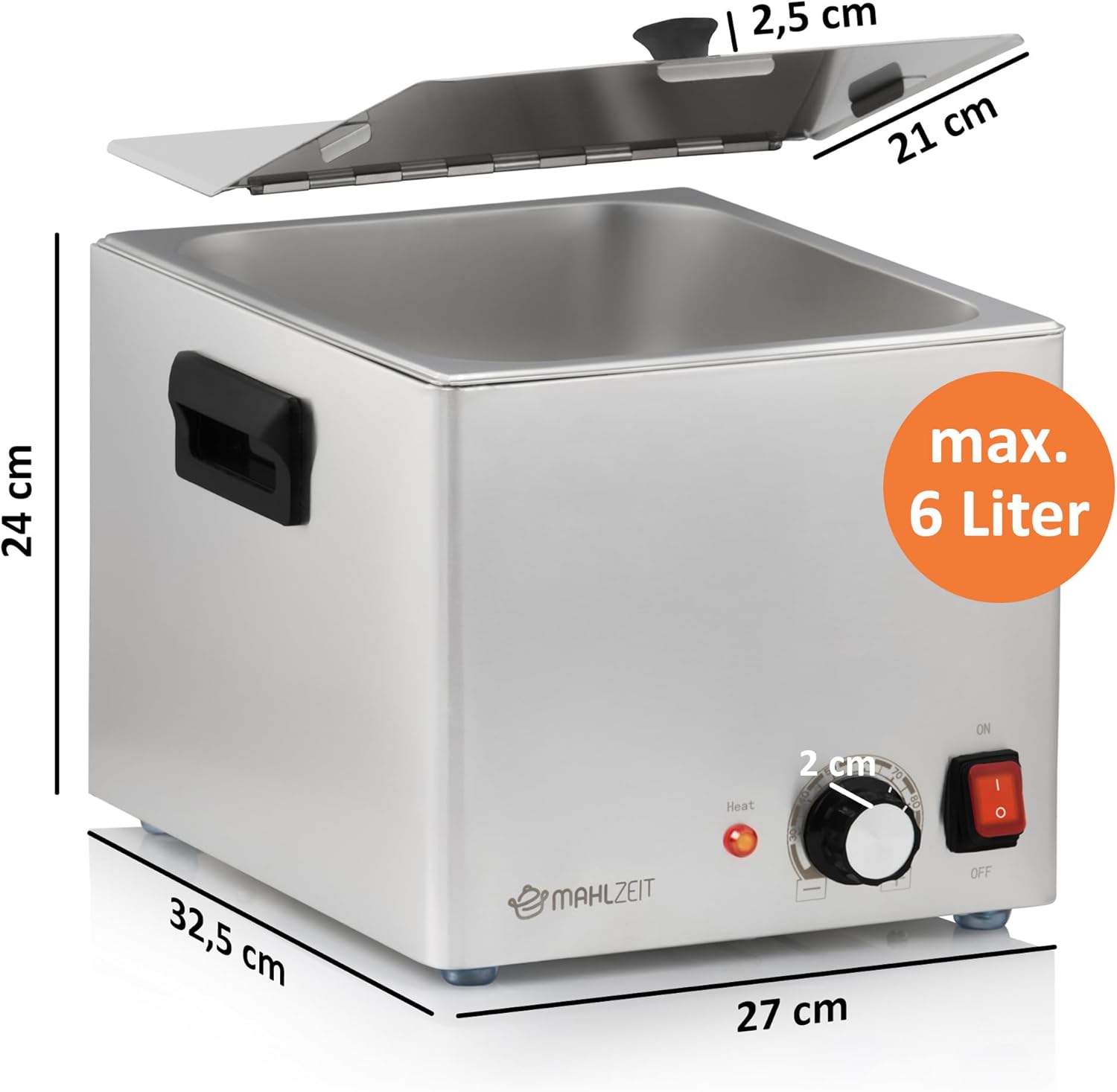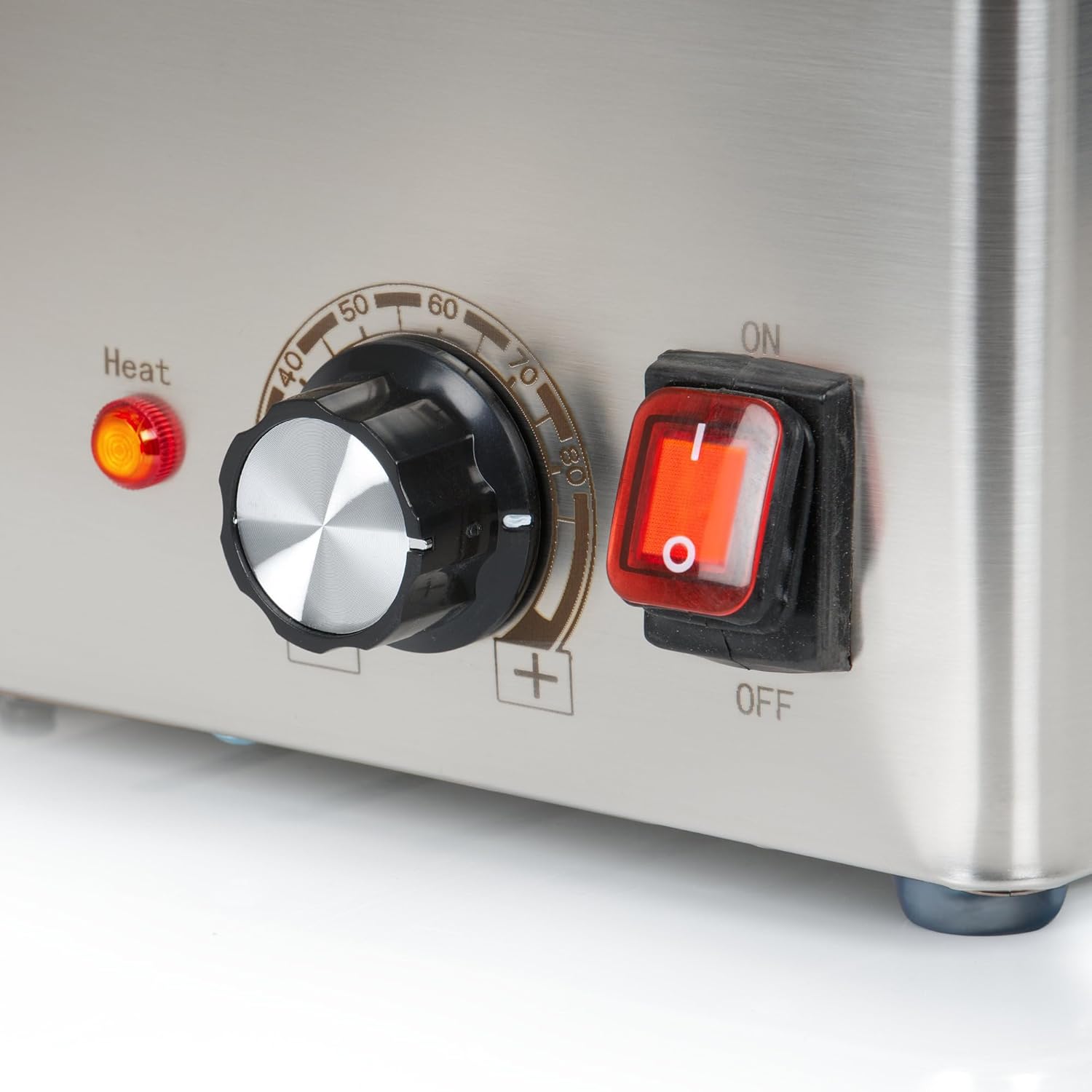 - HIGHLIGHTS | Der Würstchen Wärmer verfügt über eine vollautomatische Temperaturkontrolle, welche sich über einen Regler an der Vorderseite stufenlos einstellen lässt. Somit werden Würstchen, Bockwürste und weitere Speisen in dem Wasserbad mit