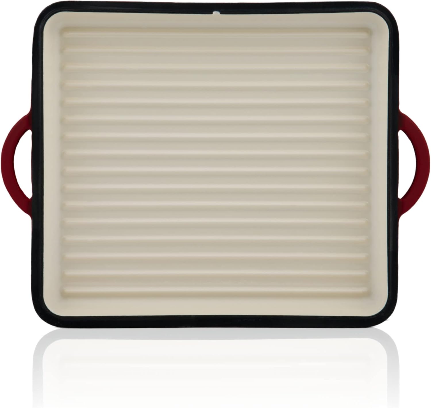 - GRILLKÜCHE | Der emaillierte Gussbräter ist die ideale Ergänzung zu Ihrem Küchenequipment. Die Bratplatte verfügt über zwei seitliche Griffe, welche ein sicheres Handling ermöglichen. Zudem sorgt das Gewicht von 8,8 kg für einen sicheren Stand.
