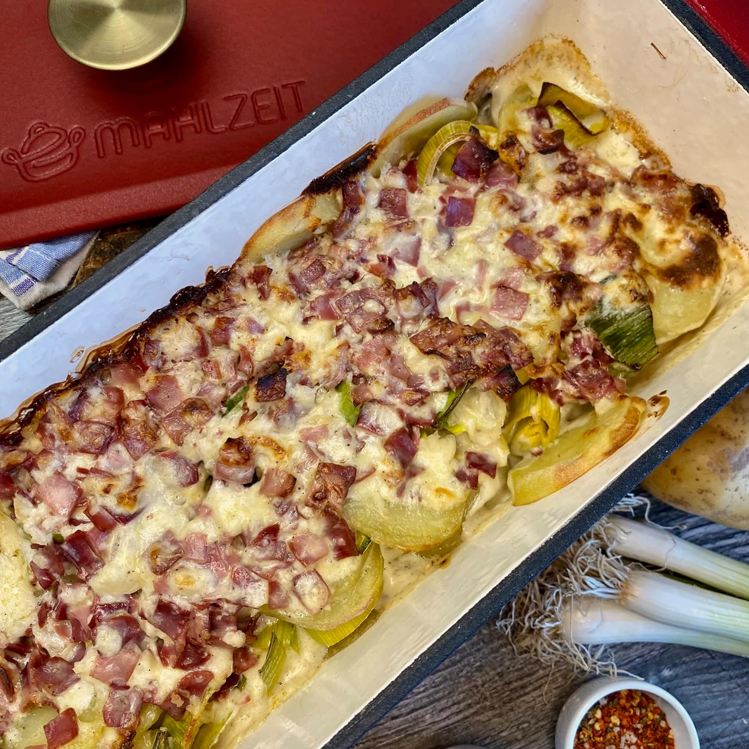 - MULTIFUNKTIONAL | Aufgrund seiner Kastenform eignet sich der emaillierte Gusseisen Bräter ideal zum Backen von Brot und vielen weiteren Backwaren. Dank des bronzefarbenen Deckelgriffs lässt sich der Deckel sicher und einfach anheben.