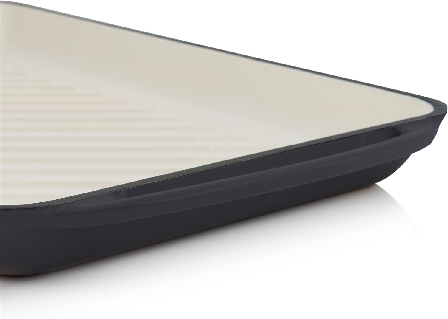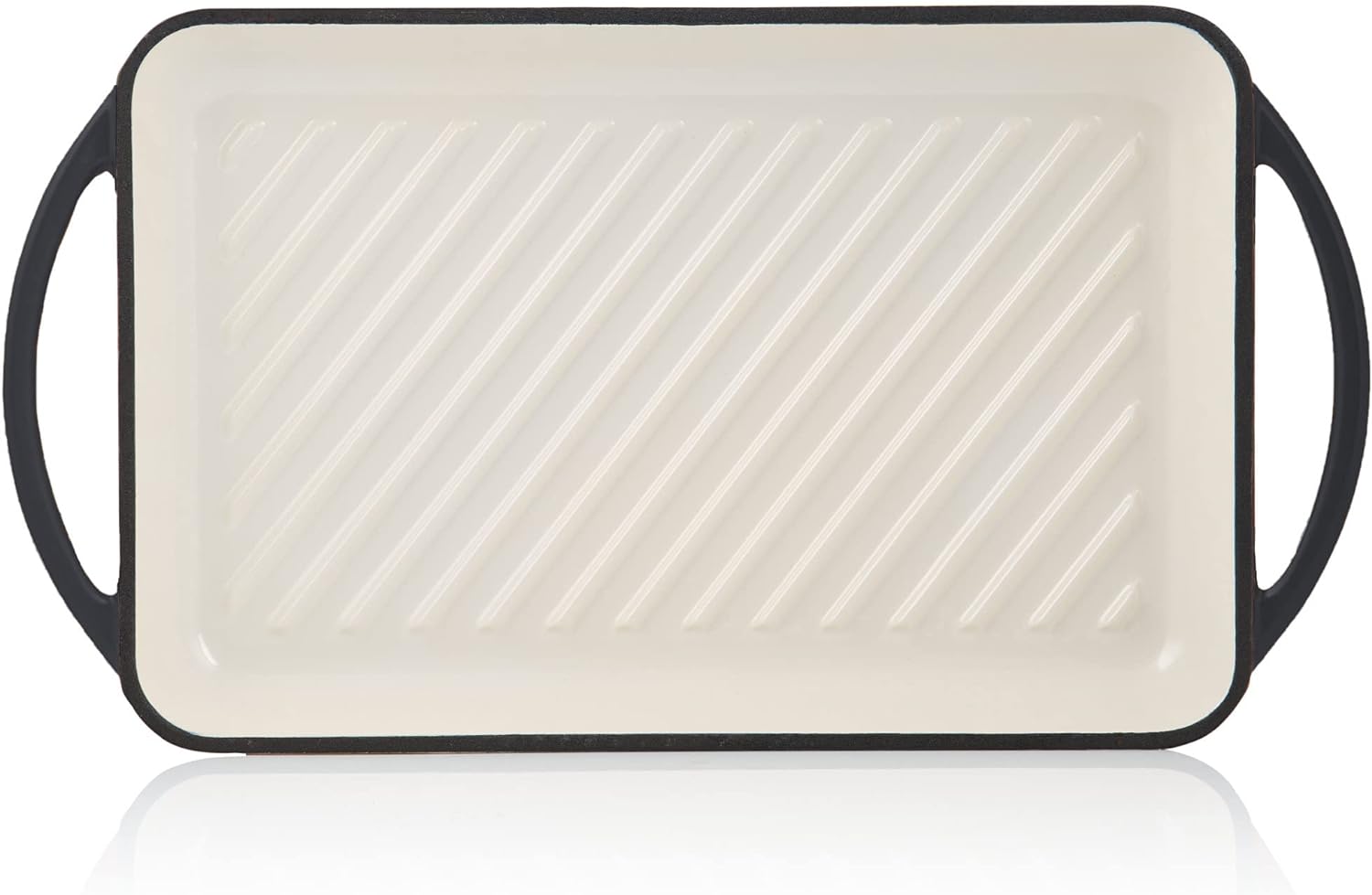 - VIELSEITIG | Die Gusseisenplatte ist thermoresistent und deshalb bestens geeignet für Kühlschrank, Backofen, Herd und Grill. Die gerippte Oberfläche erzeugt ein ansprechendes Branding auf dem Brat- und Grillgut und sorgt für zusätzliche Grillaromen.