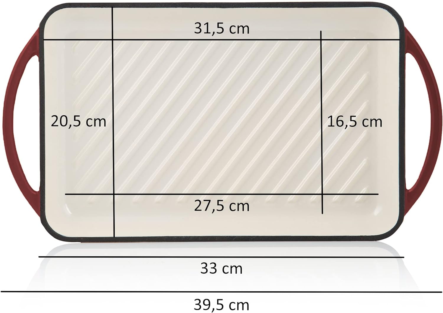 - GRILLKÜCHE | Die emaillierte Pfanne ist die ideale Ergänzung zu Ihrem Küchenequipment. Die Bratplatte verfügt über zwei seitliche Griffe, welche ein sicheres Handling ermöglichen. Zudem sorgt das Gewicht von 2,5 kg für einen sicheren Stand.