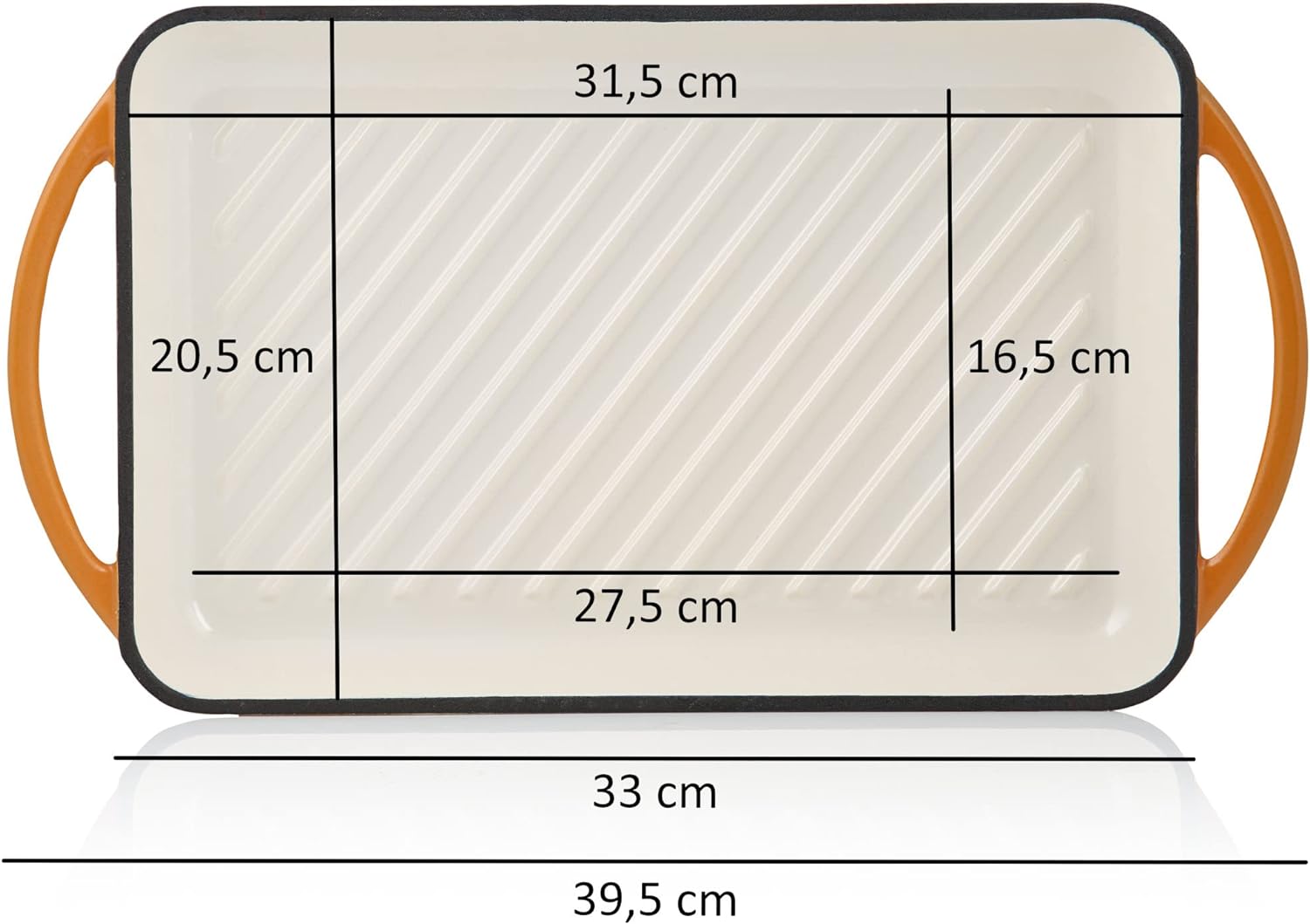 - GRILLKÜCHE | Die emaillierte Pfanne ist die ideale Ergänzung zu Ihrem Küchenequipment. Die Bratplatte verfügt über zwei seitliche Griffe, welche ein sicheres Handling ermöglichen. Zudem sorgt das Gewicht von 2,5 kg für einen sicheren Stand.
