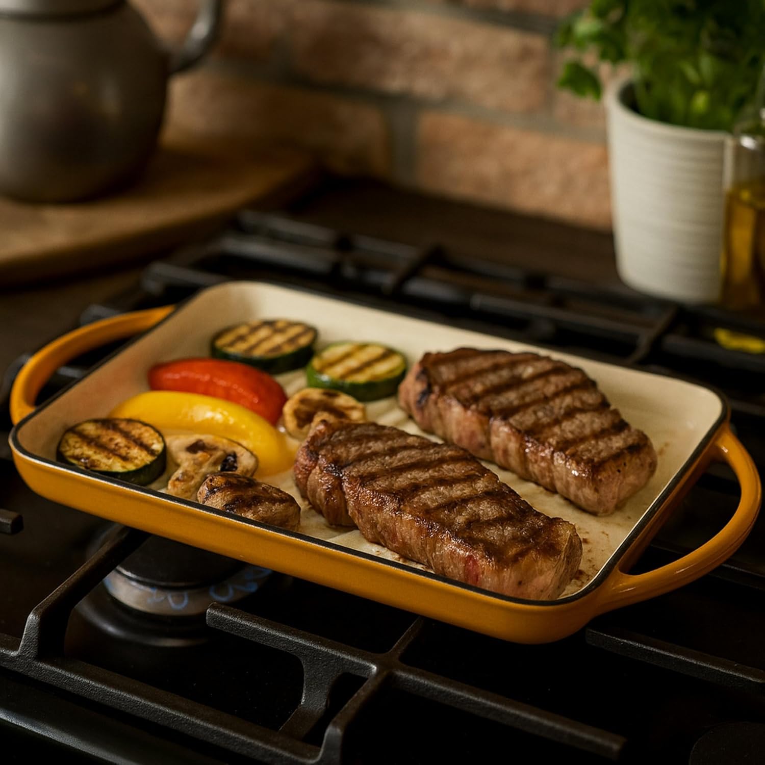 - VIELSEITIG | Die Gusseisenplatte ist thermoresistent und deshalb bestens geeignet für Kühlschrank, Backofen, Herd und Grill. Die gerippte Oberfläche erzeugt ein ansprechendes Branding auf dem Brat- und Grillgut und sorgt für zusätzliche Grillaromen.