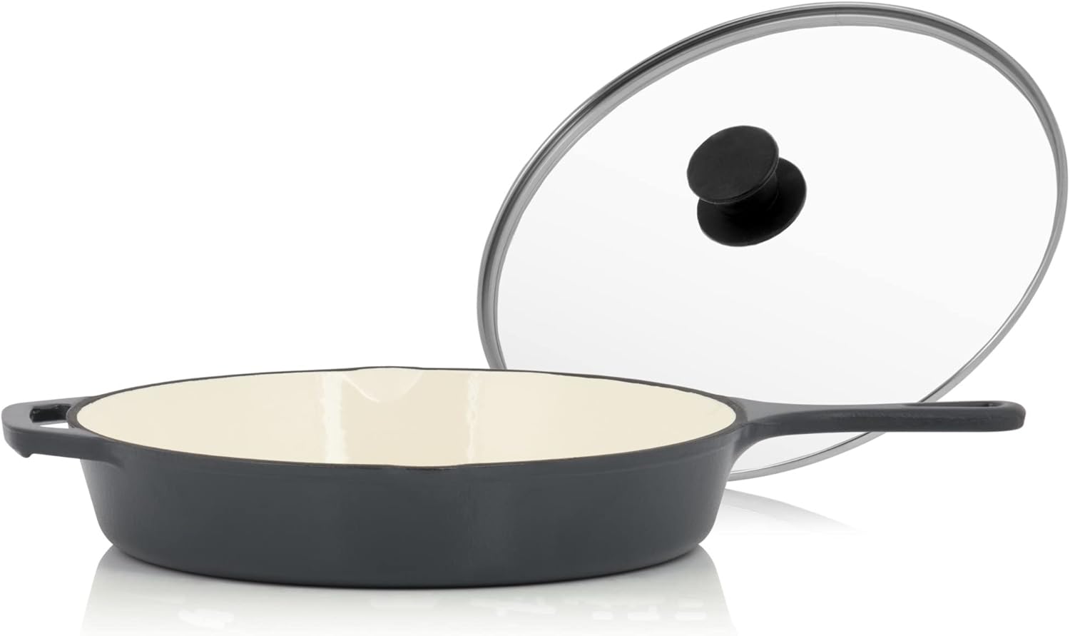 - GRILLKÜCHE | Mit einem Durchmesser von 29,5 cm bietet die Steakpfanne mit Deckel genügend Platz für ausreichendes Bratgut. Das Gewicht von rund 4,1 kg sorgt für einen sicheren Stand. Die emaillierte Pfanne ist somit die ideale Ergänzung zu Ihrem