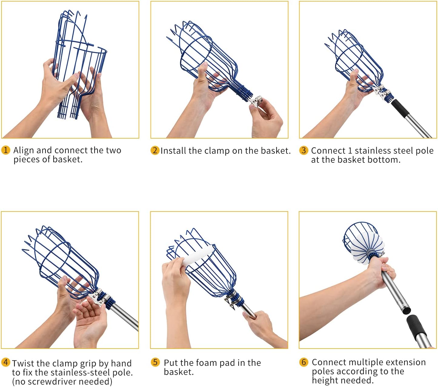- 【Einfache Montage und schnelle Befestigung】Dieser Obstgreifer kann ohne zusätzliches Werkzeug in wenigen einfachen Schritten installiert werden. Schliessen Sie den Korb an die Stange an und ziehen Sie die mitgelieferte Klemme von Hand fest. Dann