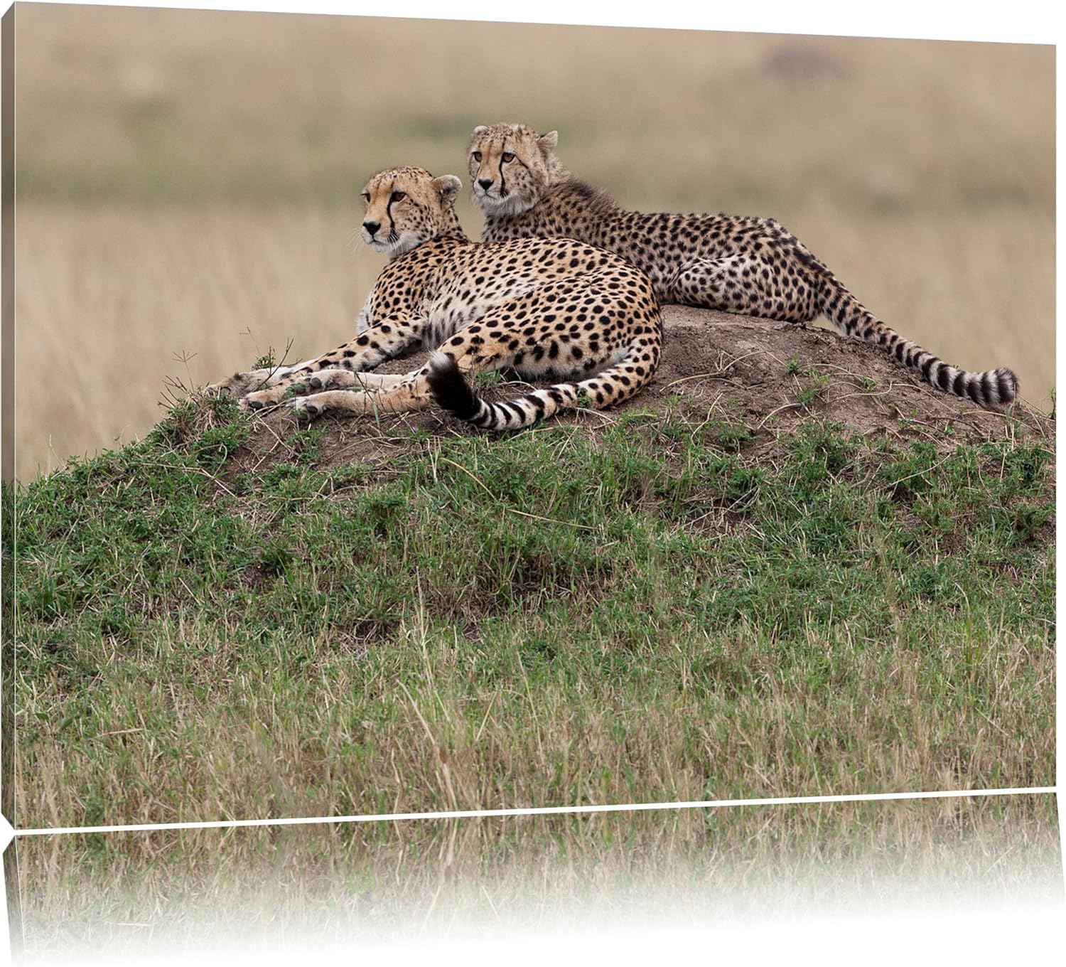 maiestätische Geparden auf Stein Leinwand, XXL riesige Bilder fertig gerahmt mit Keilrahmen, Kunstdr