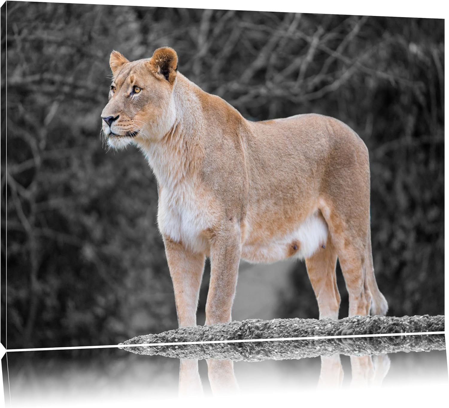 maiestätische Löwin schwarz/weiss auf Leinwand, XXL riesige Bilder fertig gerahmt mit Keilrahmen, Ku