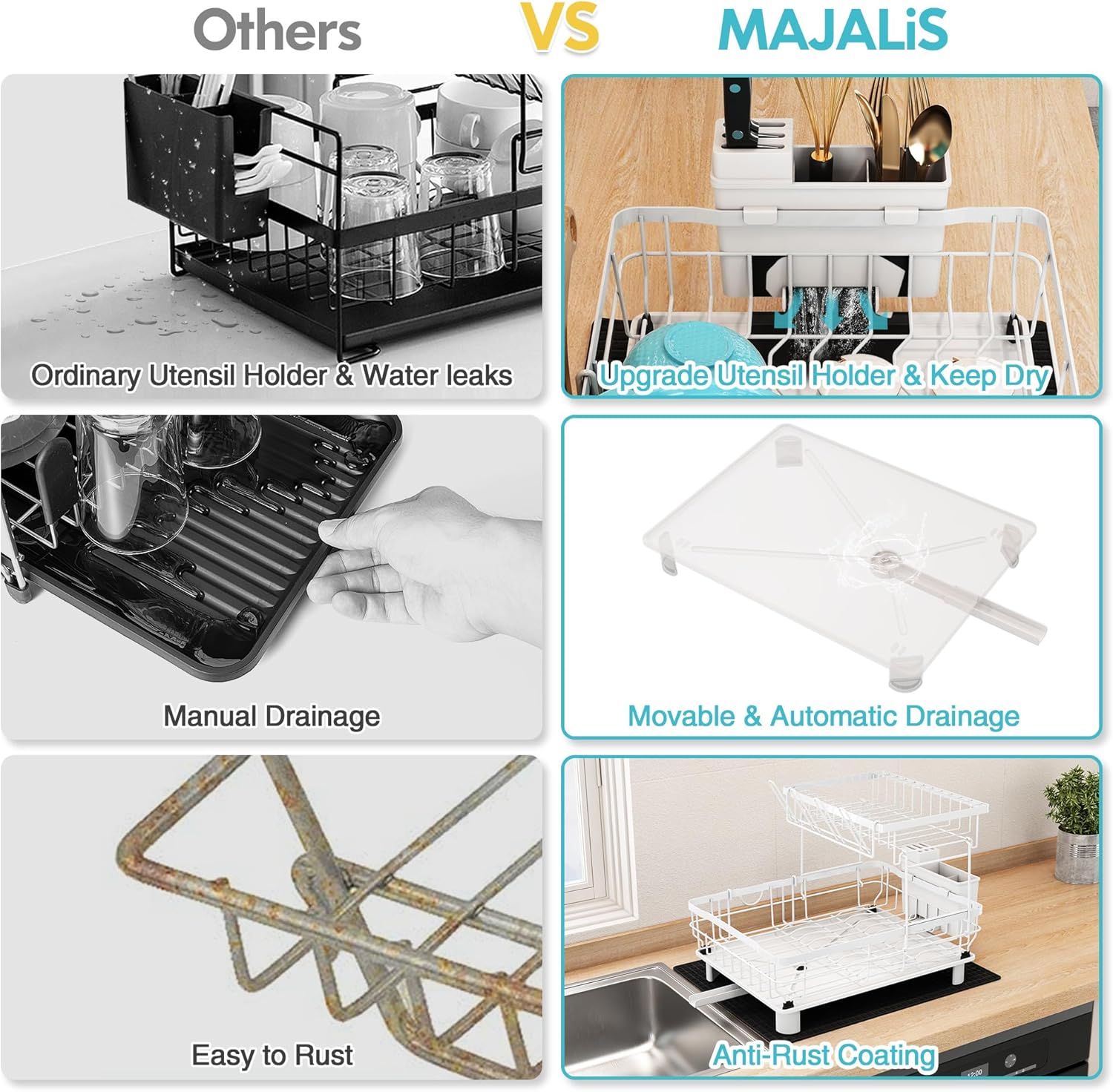 MAJALiS Abtropfgestell Geschirr, 2-Stufiges Geschirrabtropfgestell mit Abtropfschale und Abtropfmatt