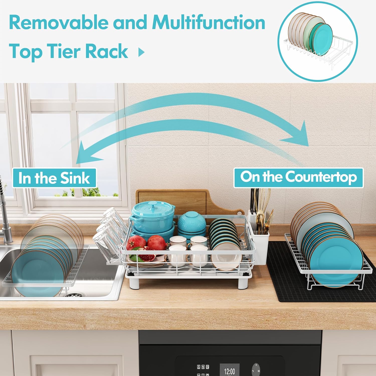 • Innovatives Abtropfbrett Und Kein Auslaufen: Dieses Geschirrabtropfgestell Verfügt Über Ein Automatisches Abtropfbrett Mit Mehr Rillen Und Einem Stärker Abgewinkelten Brett, Um Wasser Abzulassen Und Die Arbeitsfläche Trocken Zu Halten. Es Verfügt