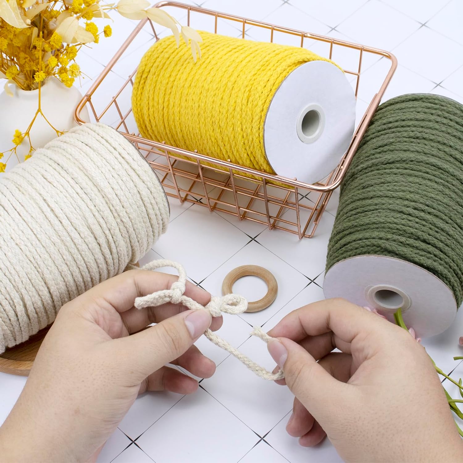 - Stark und Langlebig: Das Makramee-Seil mit 5mm Dicke ist aus 8 Strängen geflochten, weich und nicht leicht zu brechen, stark genug, um schwere Blumentöpfe zu tragen, perfekt für Ihre Bastelprojekte.