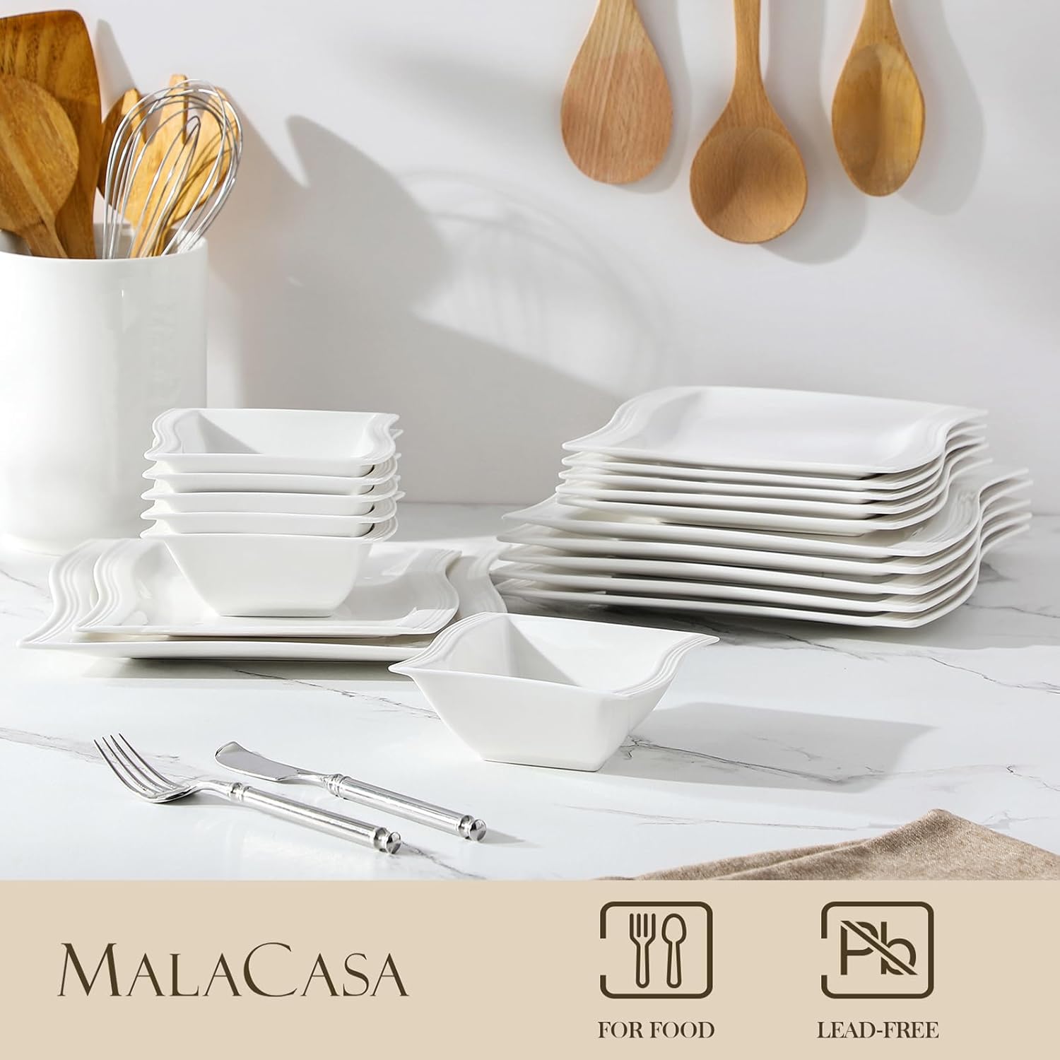 - MALACWAS ERHALTEN SIE: MALACASA Serie FLORA 18-teilige Weiss Tafelservice umfasst 6 x 10,25-Zoll-Speiseteller, 6 x 8-Zoll-Dessertteller und 6 x 450 ml Müslischalen. Dieses Geschirrset für 6 Personen ist die ideale Wahl für kleine Familien, Paare oder