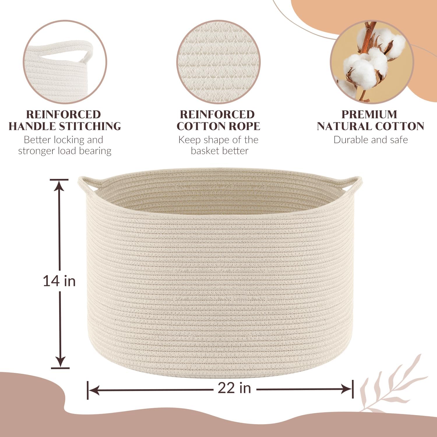 - Langlebig und wunderbares Geschenk: aus hochwertiger natürlicher Baumwolle, langlebig und sicher. Sie können die dekorativen Aufbewahrungskörbe Ihren Freunden, Kindern und Familien als Geburtstagsgeschenke, Weihnachtsgeschenke, Thanksgiving-Geschenke,