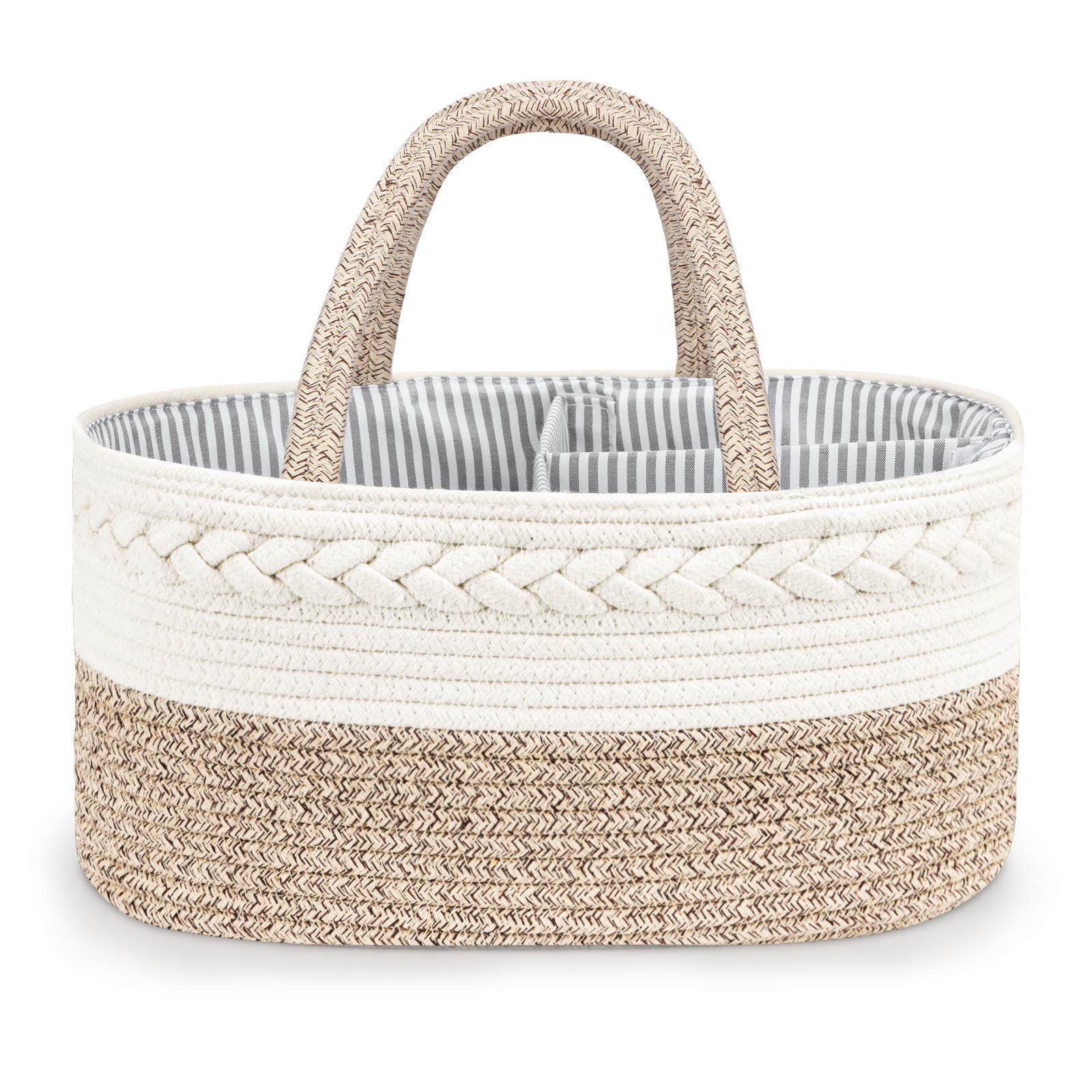 • RÜCKSICHTIGES DESIGN – Der Korb verfügt über 1 herausnehmbare T-förmige Trennwand, die 3 separate Bereiche für die Organisation Ihrer Babypflegeprodukte schafft. Oder Sie können die Trennwand entfernen und ihn als Babykorb verwenden. Der