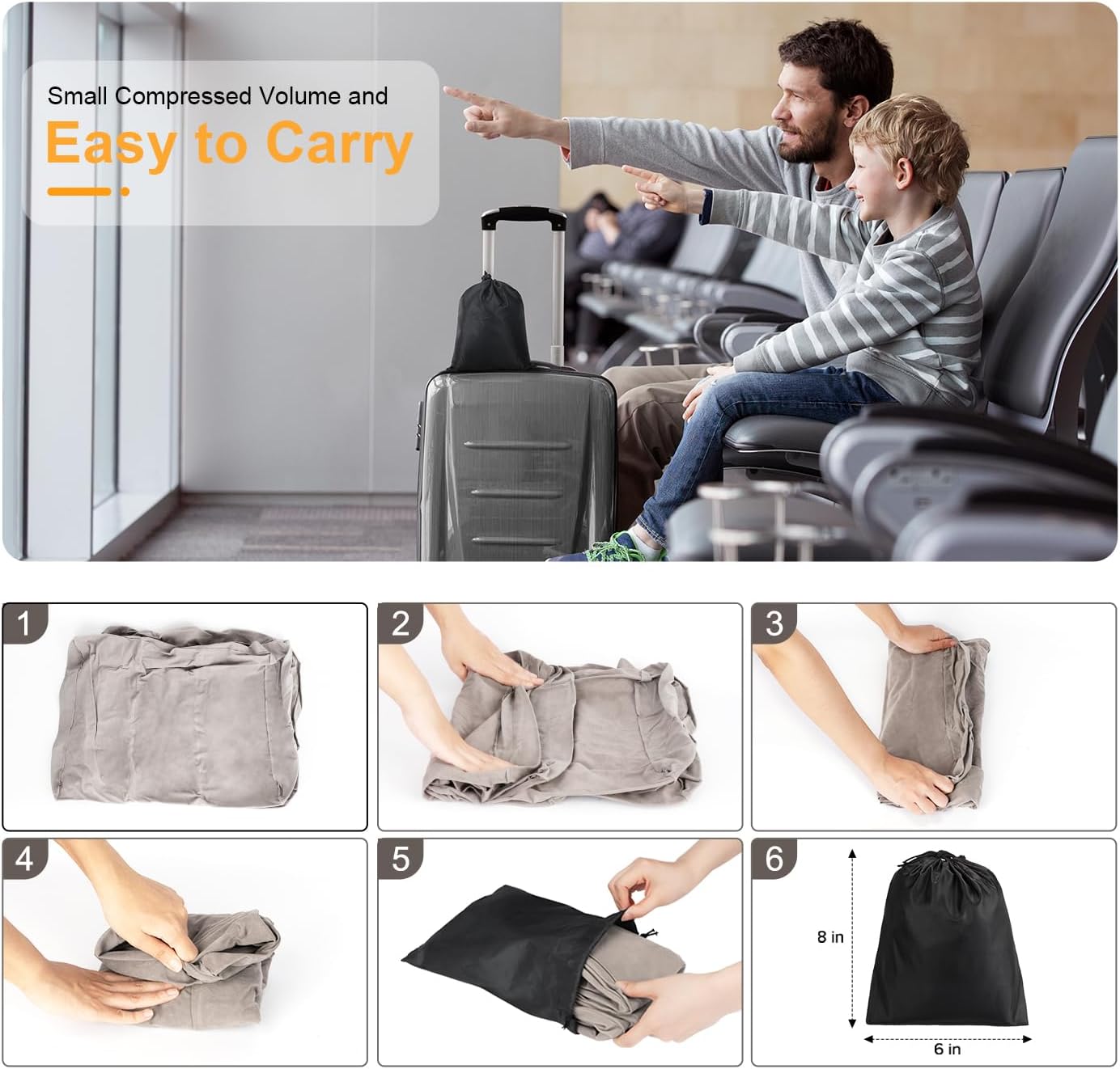 - 2. A must-have airplane travel accessory for parents: fill the gap between two seats with this travel pillow to extend the seat length; the extra surface allows kids to lie flat or raise their legs for better sleep, Or be a platform for the kids to play