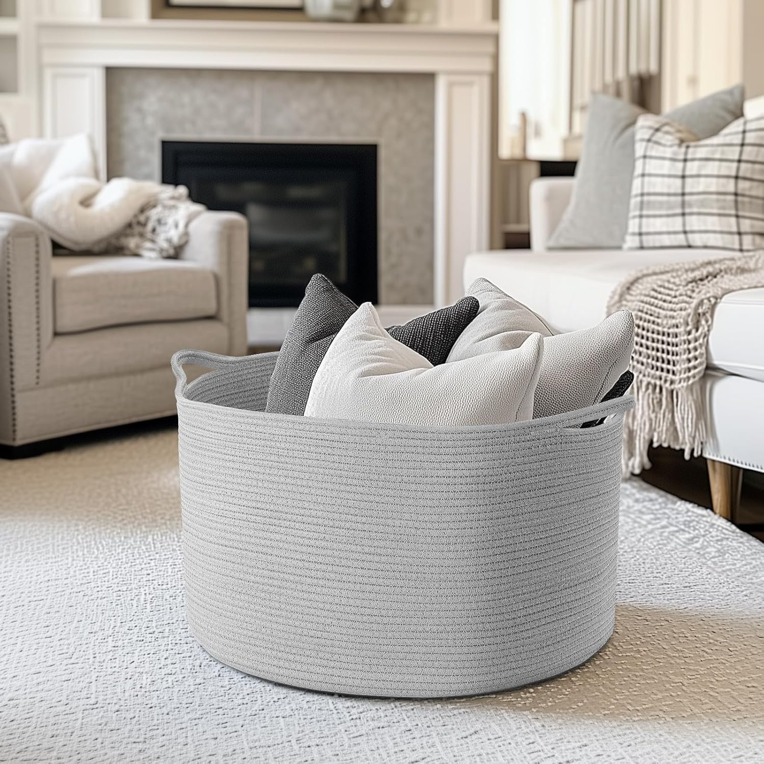 - Dekorativer Mehrzweckkorb: Der gewebte Korb in neutraler Farbe kann perfekt in jede Ecke Ihres Hauses integriert werden. Er kann als Decken-Aufbewahrungskorb für Wohnzimmer, Wäschekorb für Waschküche, Spielzeugkorb für Kinderzimmer, Kissenkorb für