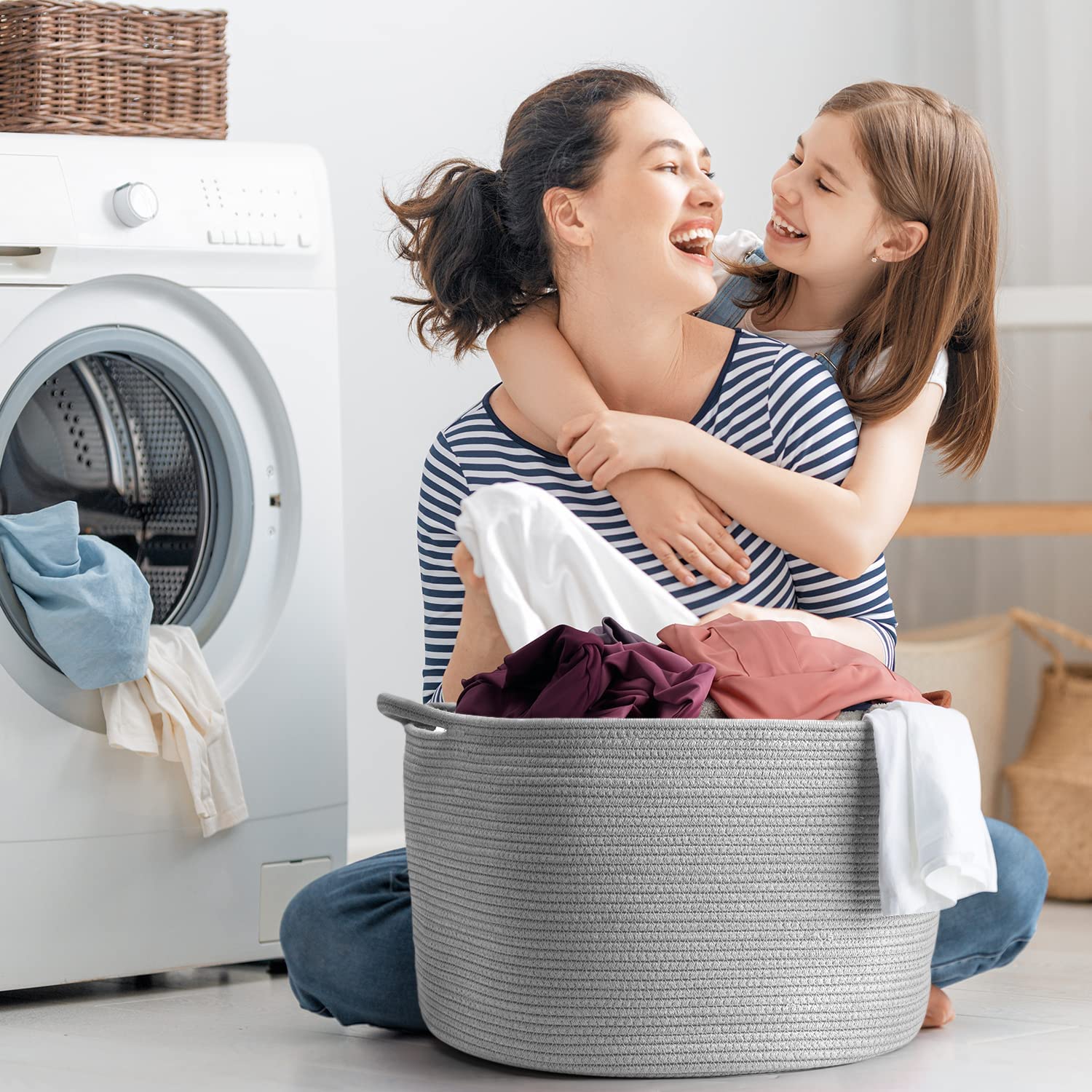 - Extra grosse Grösse: Die Grösse des grossen Korbs ist 50,8 x 50,8 x 33 cm. Es ist gross genug, um Decken, Kissen, Wäsche, Kinderspielzeug, Schuhe, Handtücher, Babysachen, grosse Pflanzen, Yoga-Matte, Kleinteile und mehr zu halten. Halten Sie Ihren