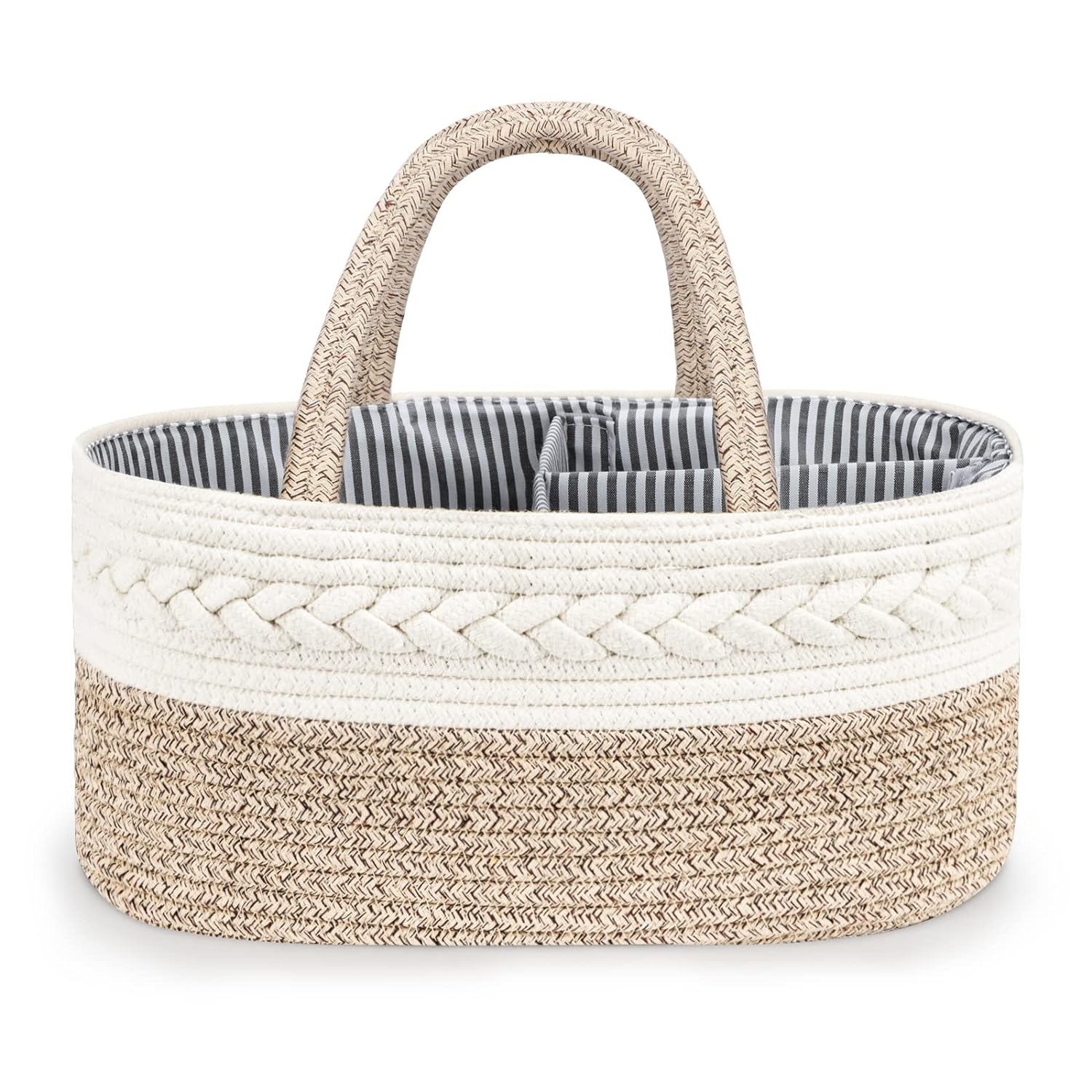 - ❤️【Praktisches Design】Verbesserte, längere Griffe erleichtern den Müttern das Tragen der Baby Windel Caddy Organizer im Haus. Abnehmbare Teiler sind für Eltern entworfen, um verschiedene Fächer des Wickeltisch Organizers zu schaffen, oder Sie