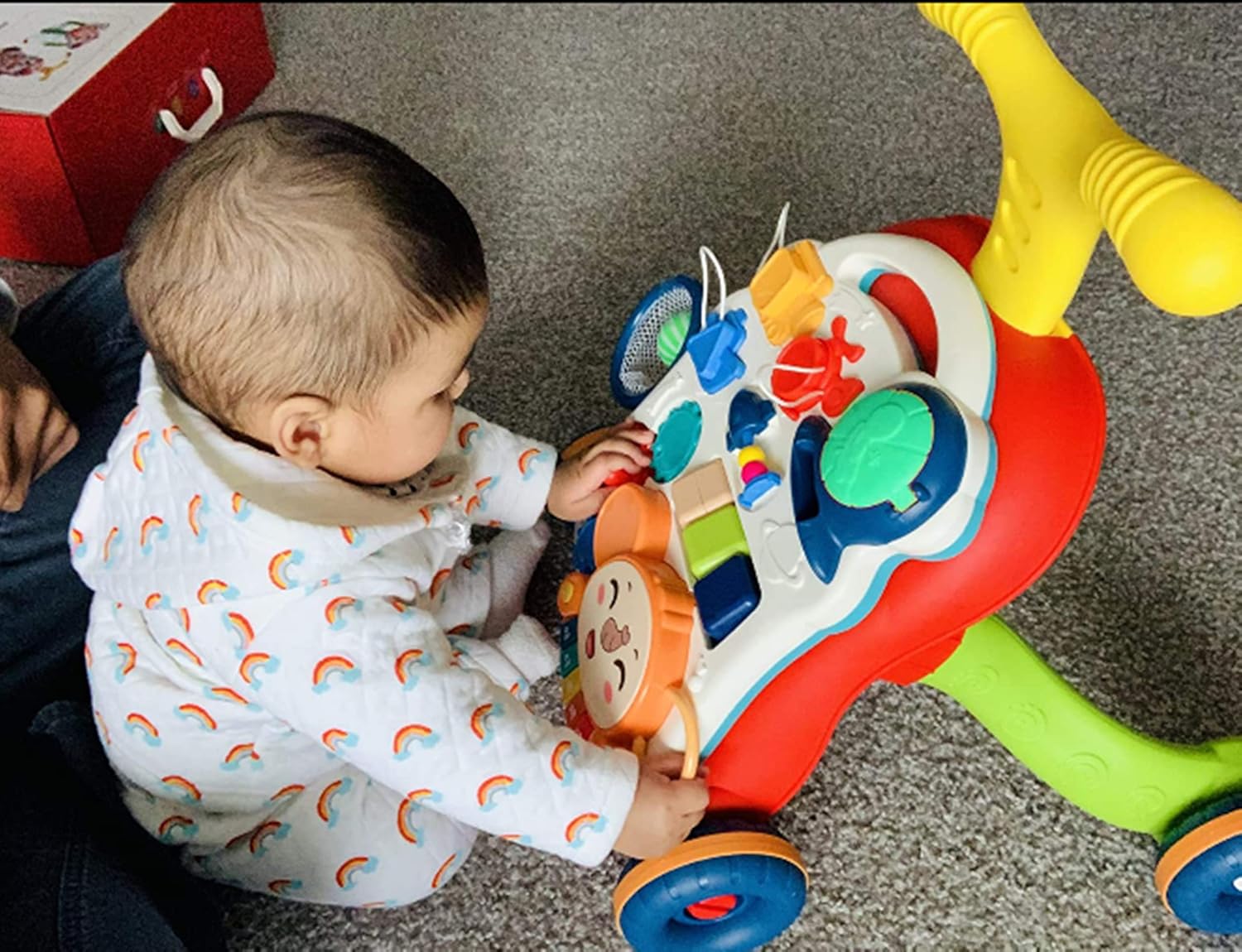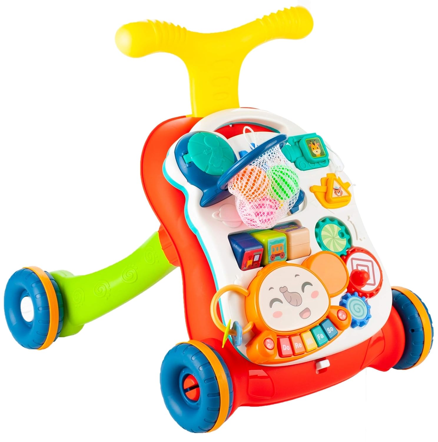 - Entwickelt das Kind: Der vorgestellte Lauflernwagen beeinflusst nicht nur das Erlernen des Gehens, sondern unterstützt auch die sprachliche, sensorische und motorische Entwicklung des Kleinkindes und lehrt.