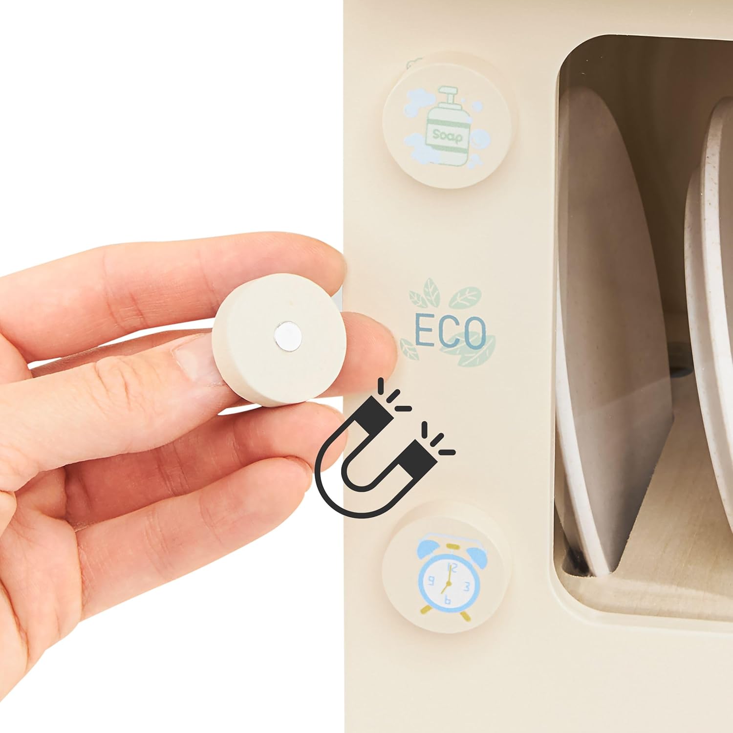 - Mit dem mitgelieferten Geschirr, Tassen und magnetischen Spülmaschinentabs können Kinder das Geschirrspülen realitätsnah nachspielen und dabei motorische Fähigkeiten entwickeln.