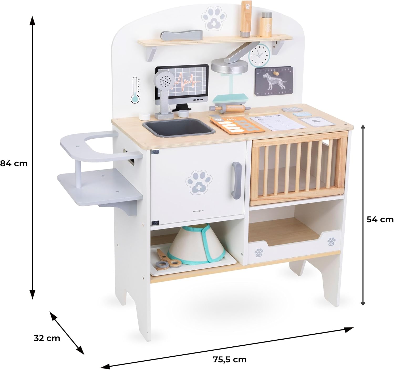 - Komplettes Tierarzt Spielset aus Holz: Mit Tierkrankenhaus, Stethoskop, Spritze, Röntgenbildern & Zubehör – für realistische Rollenspiele und stundenlangen Spielspass zu Hause oder im Kindergarten.