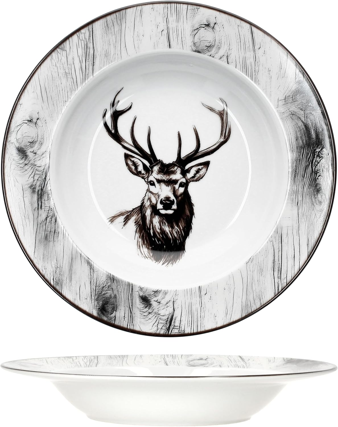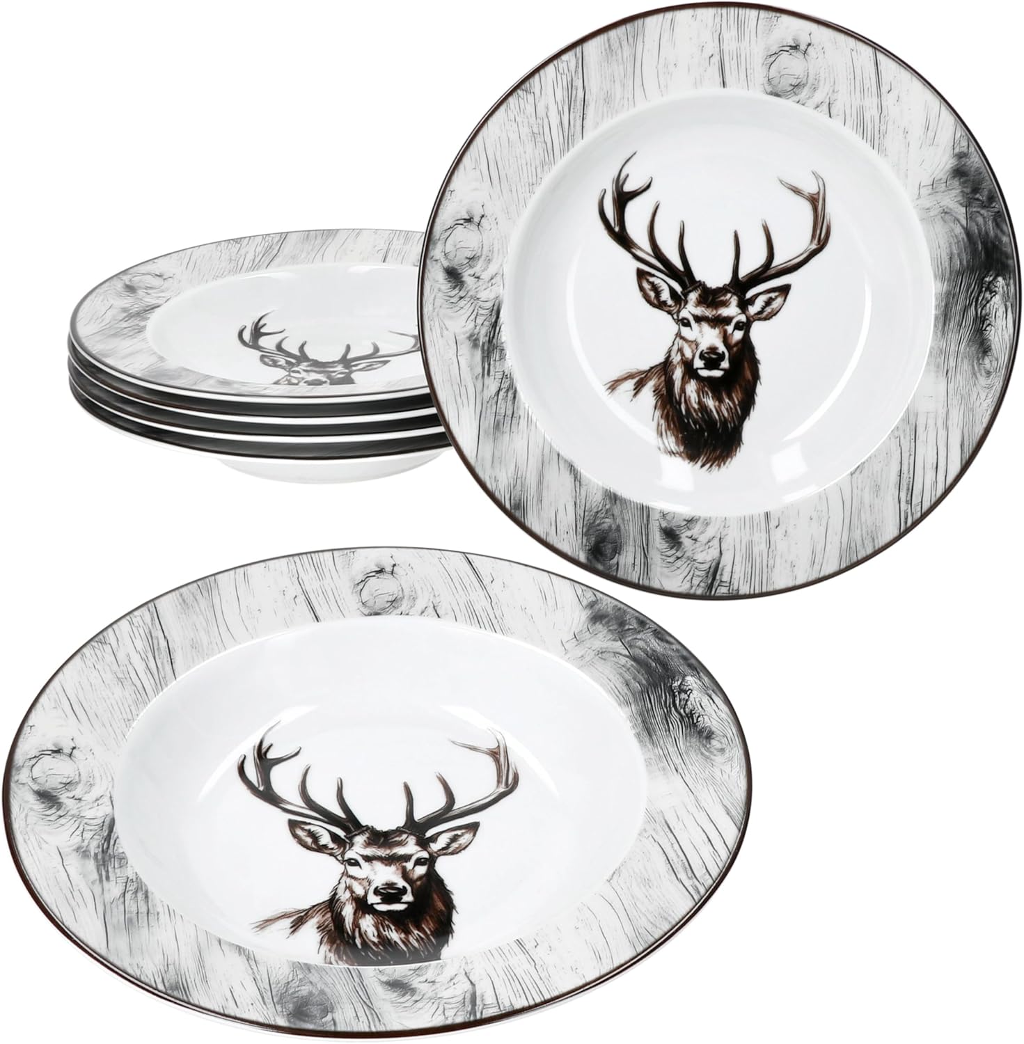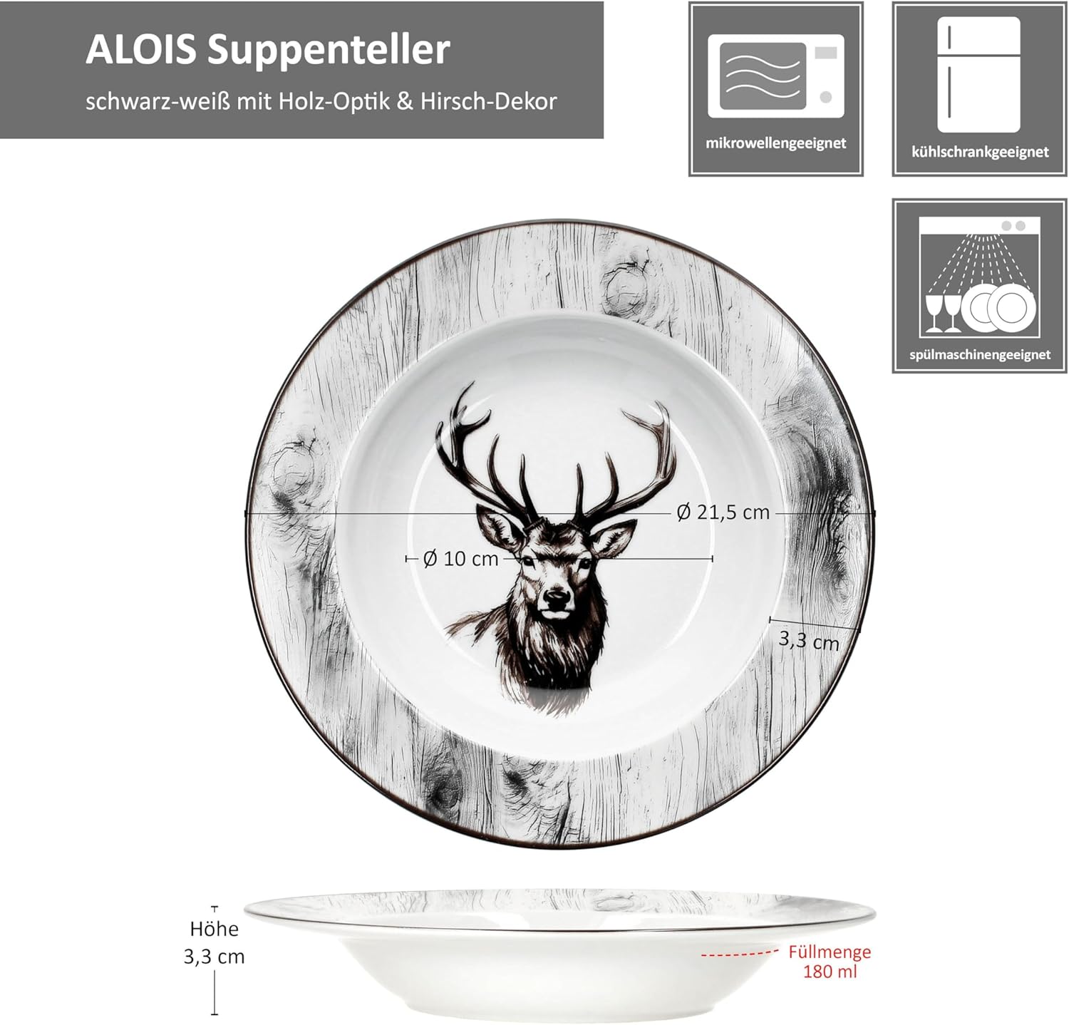 MamboCat Alois 6er Set Suppenteller I 180ml I Porzellan-Geschirr mit Hirsch-Dekor für 6 Personen I T